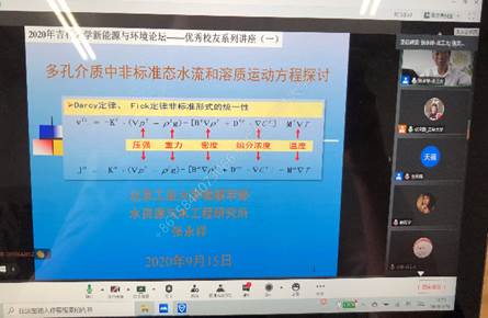 各位优秀学长结合多年来的工作心得和研究成果,给公司师生带来了多场精彩报告。张永祥教授对比介绍不同时期多孔介质水流和溶质运动方程的建立方法和形式,重点介绍基于统计热力学的地下水动力学方程的建立过程。王洪涛教授重点介绍了我国水处理剩余污泥和生活垃圾产生量巨大,在简介主要技术路线的基础上探讨我国应有的选择。曾溅辉教授重点介绍了沉积盆地地下水流动特征,讨论了地下水流动对油气藏形成和分布的影响,以及有关地下水对油气藏形成和分布影响的具体实例。李广贺教授结合我国水土污染治理国家修复和技术发展,重点介绍了地下水污染修复的相关政策和技术。井立强教授介绍了近年来发展的系列基于光生电荷调控的改性策略,以及所采用策略显著地改善材料光生电荷分离状况的关键机制。严刚副经理介绍了我国大气环境规划发展历程、主要技术方法及未来管理需求与展望。胡春教授重点介绍了如何通过表面微电场的构建,解决传统芬顿体系在实际应用中的瓶颈问题。束龙仓教授回顾了32年来从事地下水研究工作的足迹,介绍了济南泉水研究的关键环节、泉水持续喷涌的科学应对方法。
