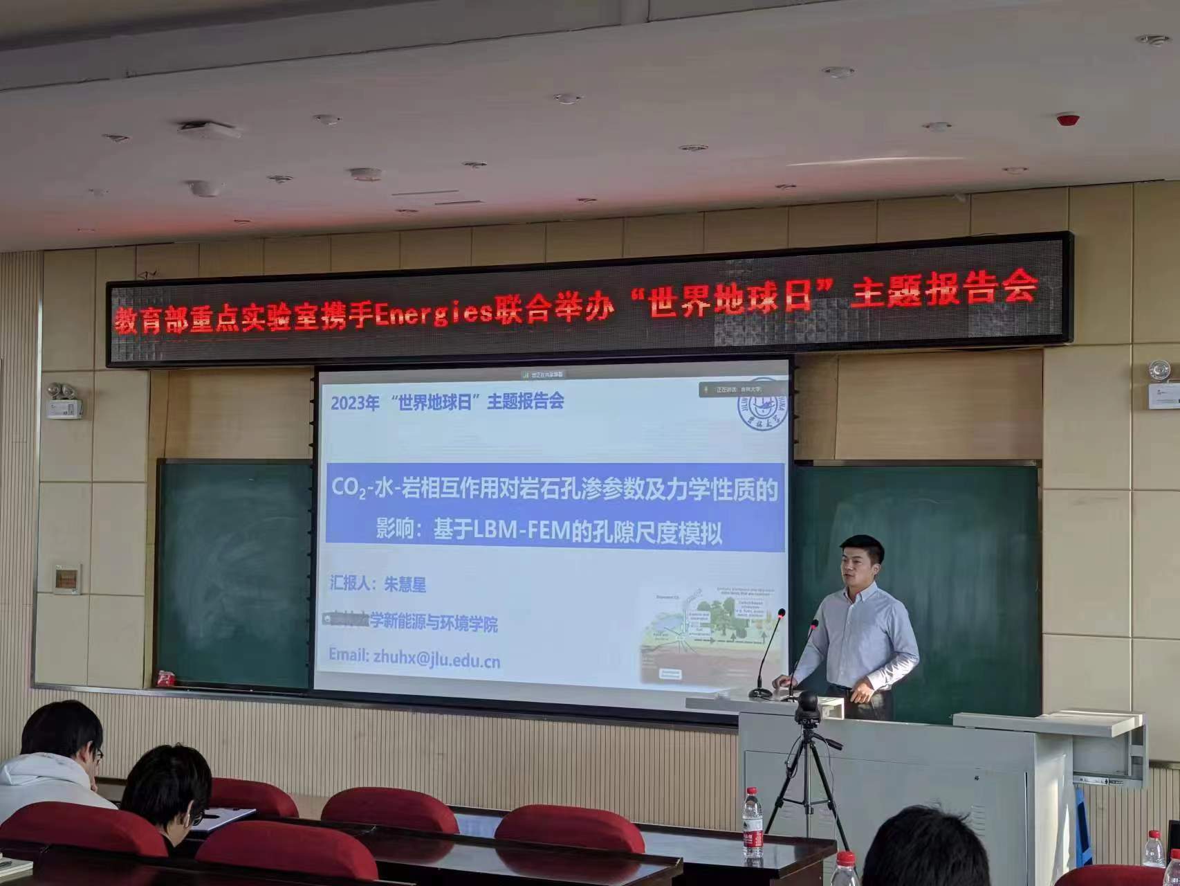 会议首先由HAHA体育地下水资源与环境教育部重点实验室主任、哈哈体育经理许天福教授介绍了“世界地球日”的起源、意义。随后,哈哈体育田海龙教授宣读了本次交流会的议程,并主持本次会议。HAHA体育冯波教授、于子望副教授、袁益龙副教授、封官宏副教授以及朱慧星助理研究员等5位重点实验室的骨干教师,以及吉林油田油气工程研究院三次采油研究所所长判若生高级研究员,分别围绕着EGS(增强型地热系统)储层建造中化学刺激技术应用进展、CO2增强石油开采及封存中的地质力学响应、复杂裂隙介质地热储层水热运移耦合岩石力学作用模拟、超临界地热模拟能力开发及工程应用、CO2-水-岩相互作用对岩石孔渗及力学性质影响模拟、吉林油田CCUS-EOR实践与认识等主题汇报了近年来取得的进展与成果,并回答了线上观众提出的一些问题。6位汇报人汇报结束后,与线下观众进行了进一步的交流讨论。