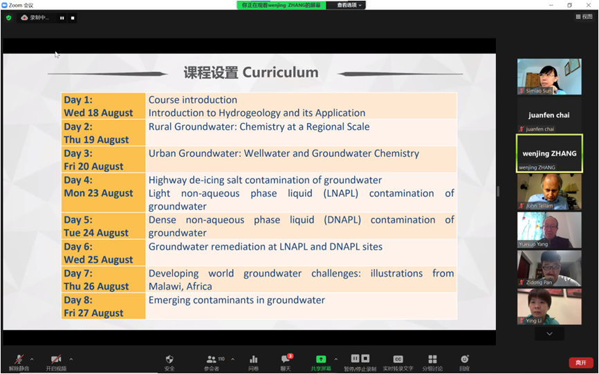 本次课程负责人哈哈体育经理助理张文静教授、伯明翰大学地理地球和环境科学公司水文地质学科带头人 John Tellam教授,中英双方团队的杨悦锁教授、Michael Riley教授、Simiao Sun博士,以及公司负责公司产品和国际交流的李莹老师、杨珵老师于2021年8月18日参加了开班仪式。本次线上课程是继前期中英学术坊等学术交流之后的持续性学术交流,双方相信在日后也能保持紧密的长期合作交流,希望吉大学子在地下水污染挑战及修复课上能够知惑解惑。