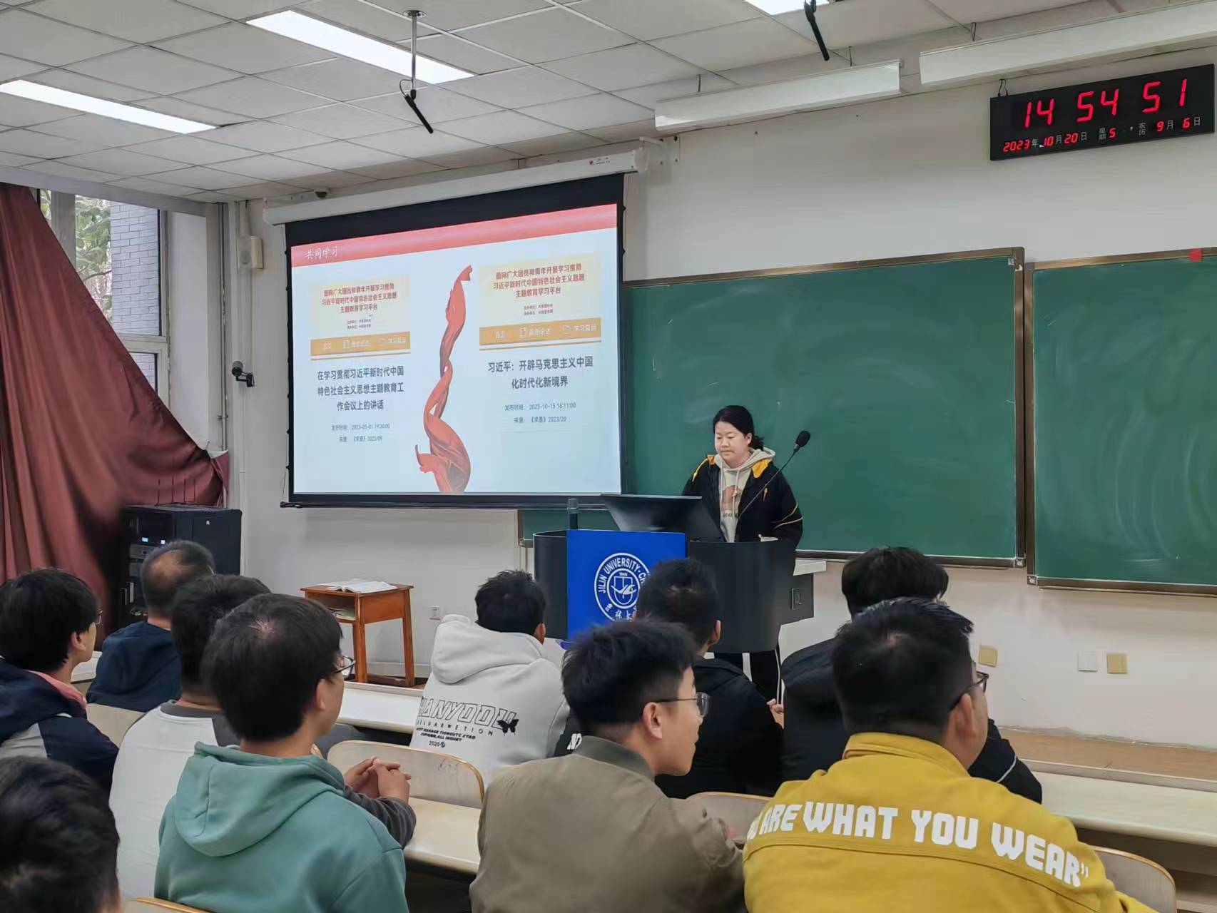 会议开始,同学们共同学习《求是》杂志上的文章。《求是》是中国共产党中央委员会主办的机关刊物,是中共中央指导全党全国工作的重要思想理论阵地,担负着深入宣传马克思列宁主义、毛泽东思想和中国特色社会主义理论体系,宣传贯彻习近平总书记系列重要讲话精神,宣传阐释党的路线方针政策和中央决策部署,总结宣传各地各部门实际工作经验,回答干部群众关心的重大理论和现实问题,提高全党的马克思主义理论水平,巩固全党全国人民团结奋斗的共同思想基础的重要任务。