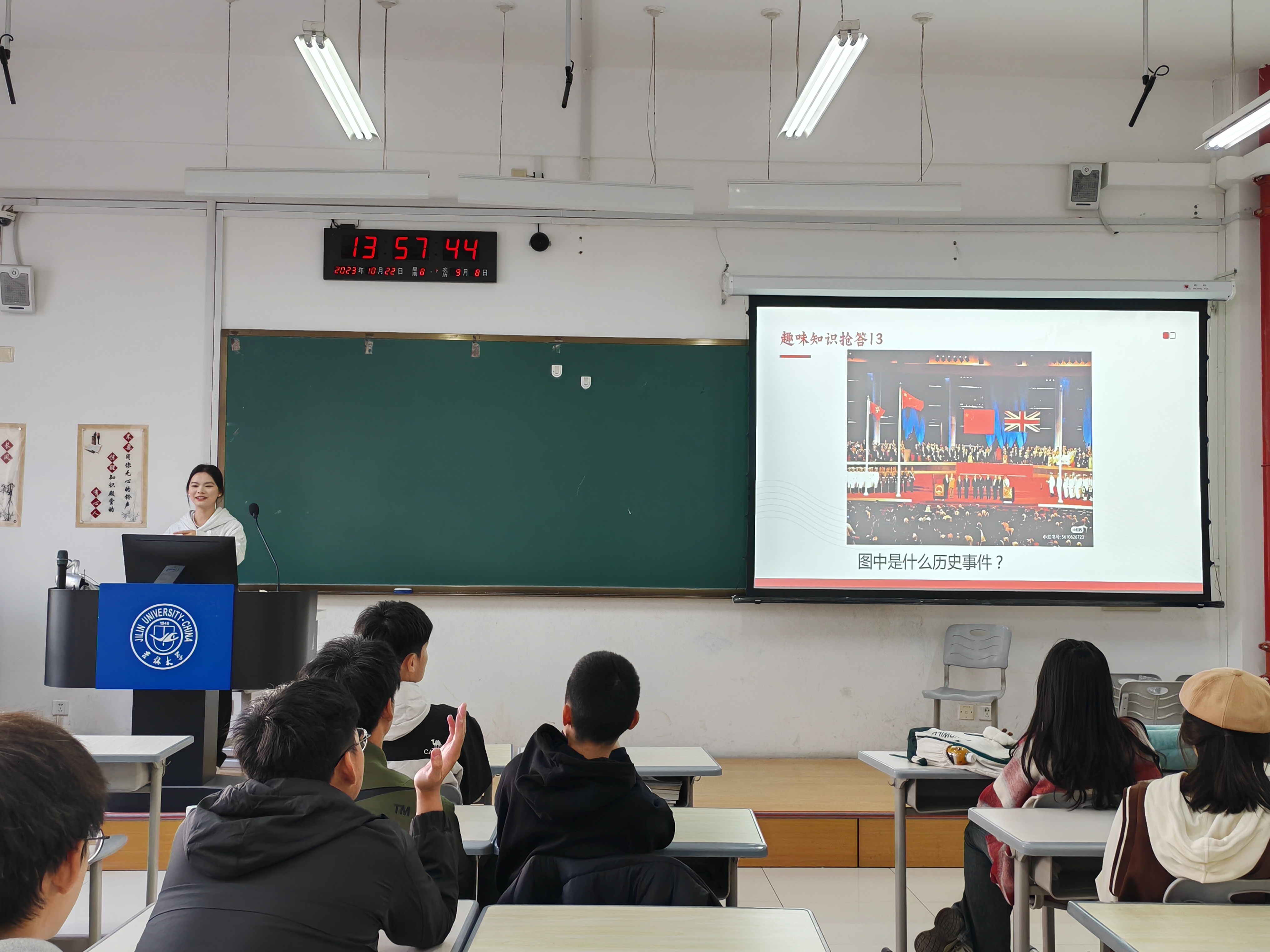 接着,在团支书的主持下,以小组形式进行了趣味知识抢答环节。紧跟课堂的同时,增加同学们课外知识的厚度与广度,培养全方位发展的人才,更好为实现教育强国注入新活力。本次趣味抢答从世界的到民族的、地域的,从学科的到常识的等不同角度调动同学们探索课内外知识的兴趣,拓宽同学们的知识领域,同时通过小组抢答的方式,也增强同学们团队协作意识。全体同学在本环节中热情高涨,表现出极强的积极性。