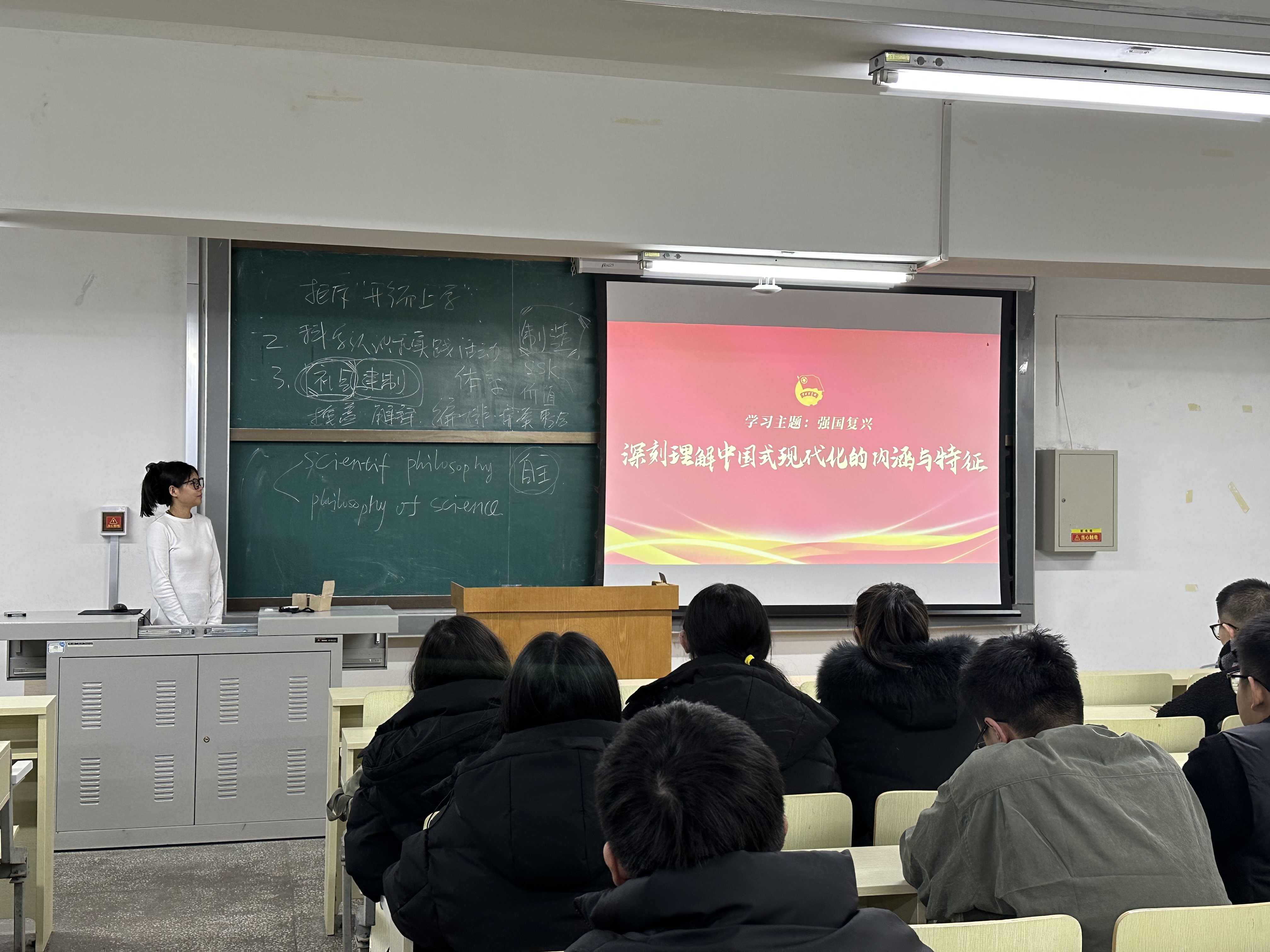 为深入学习党的二十大关于全面建成社会主义现代化强国,以中国式现代化全面推进中华民族伟大复兴战略和习近平总书记的相关重要论述,动员引领团员和青年认真学习领悟二十大报告中蕴含的强大真理力量,切实体会党的二十大报告的独特思想魅力,真正做到学深悟透、融会贯通、真信笃行,为强国复兴的伟大事业注入强大的青春力量。2023年11月24日下午4:30,哈哈体育2023级环境工程系研究生团支部在水工楼419开展了“强国复兴”主题团日活动,团支部共有三十余名同学参加本次活动。本次团日活动由2023级环境工程系研究生团支部书记杨春钰主持,活动分为“什么是中国式现代化”和“在推进中国式现代化中贡献青年力量”两大模块进行学习,分别由李莹琪同学主讲,丁李露同学参与讨论分享。