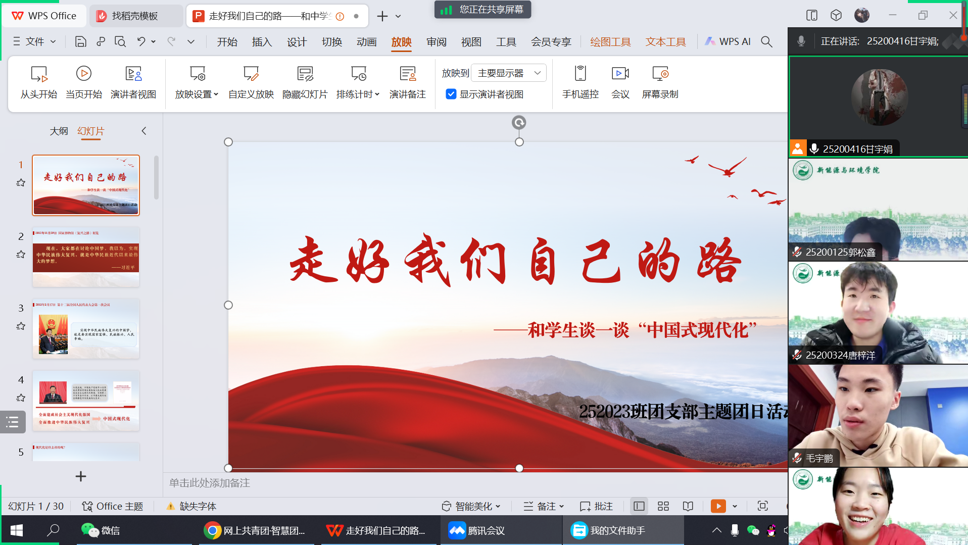 根据相关资料,本次团日活动主要探讨的问题便是,如果说“全面建成社会主义现代化强国”“全面推进中华民族伟大复兴”是“中华号”巨轮将要乘风破浪驶向的方向,那么“中国式现代化”就是驶向目的地的路径选择。到底什么是“现代化”,什么又是“中国式现代化”?
