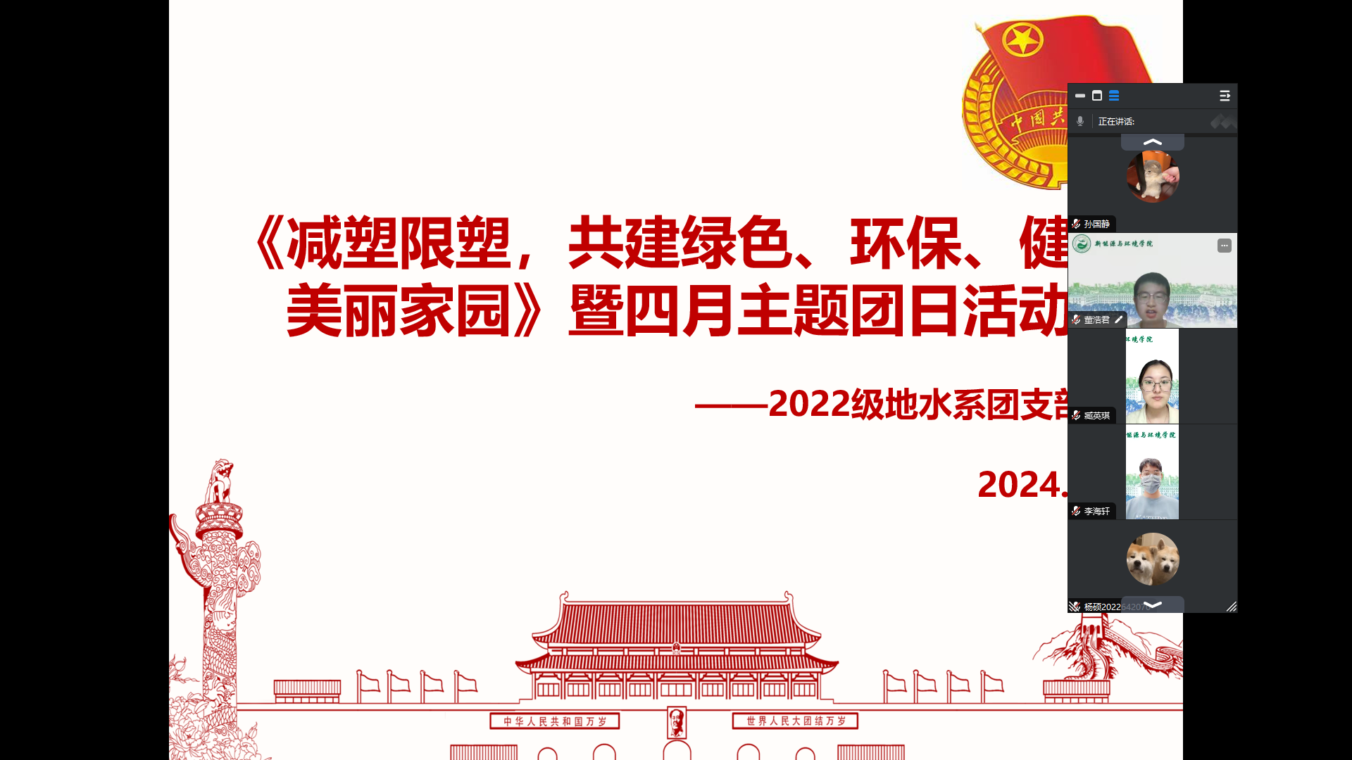 本次主题团日活动主要包括观看视频《中国的“限塑之路”》、公益广告《减少一次性塑料使用》和团支部成员分享感悟3个环节。