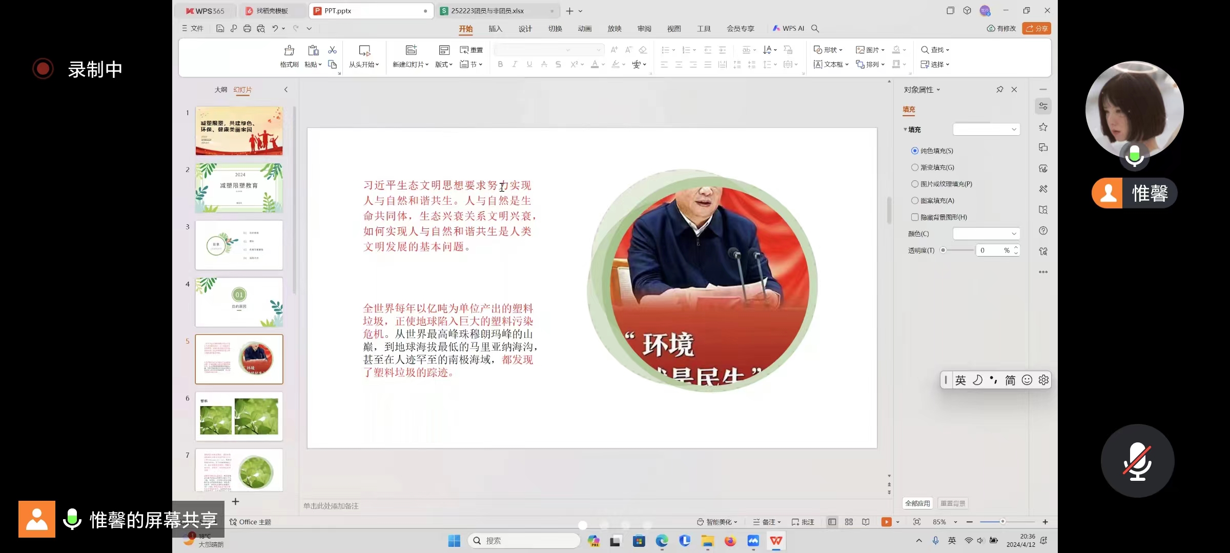 首先,团支书路世巧从习近平生态文明思想要求和如今塑料污染的严峻形势切入主题——为何开展建塑限塑塑料污染普及教育。