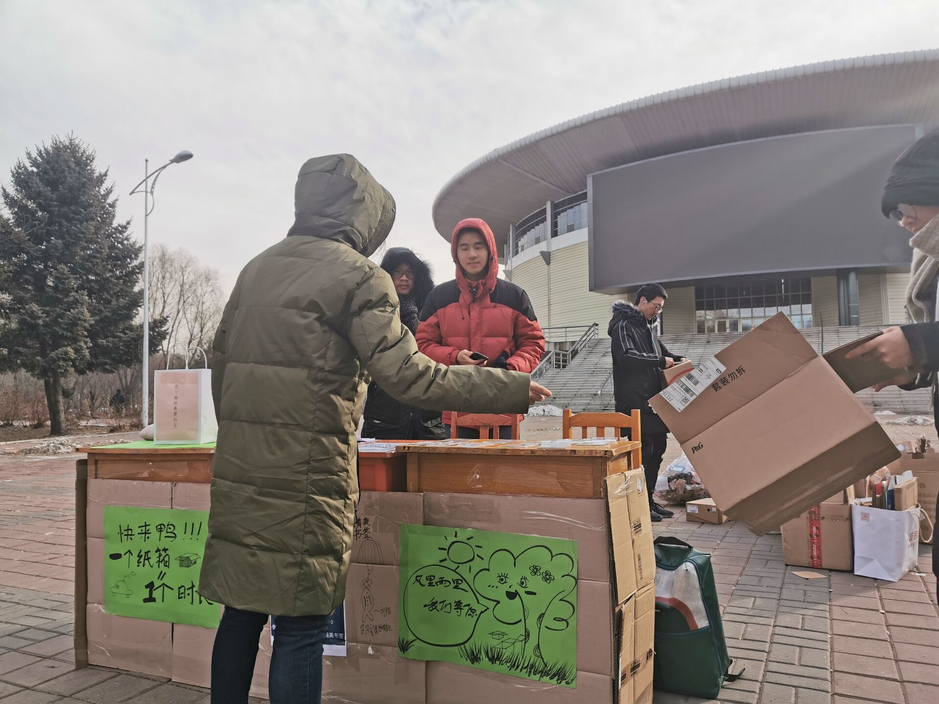 于此同时,双十一刚过,此活动还解决了快递箱堆积成山的问题,走进同学们的生活,为同学们及保洁阿姨结了燃眉之急。加之本次活动还别出心裁等准备了精美小书签作为礼物。一开展,就受到了同学们的积极响应,颇受好评。