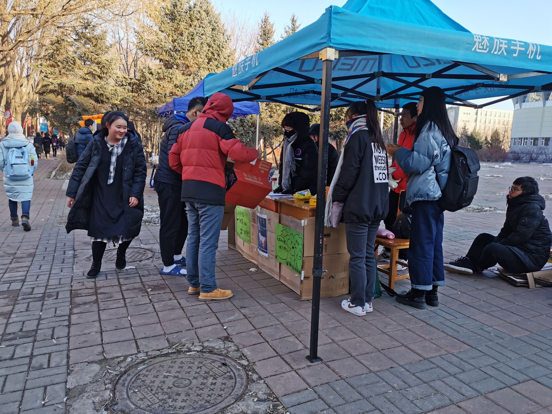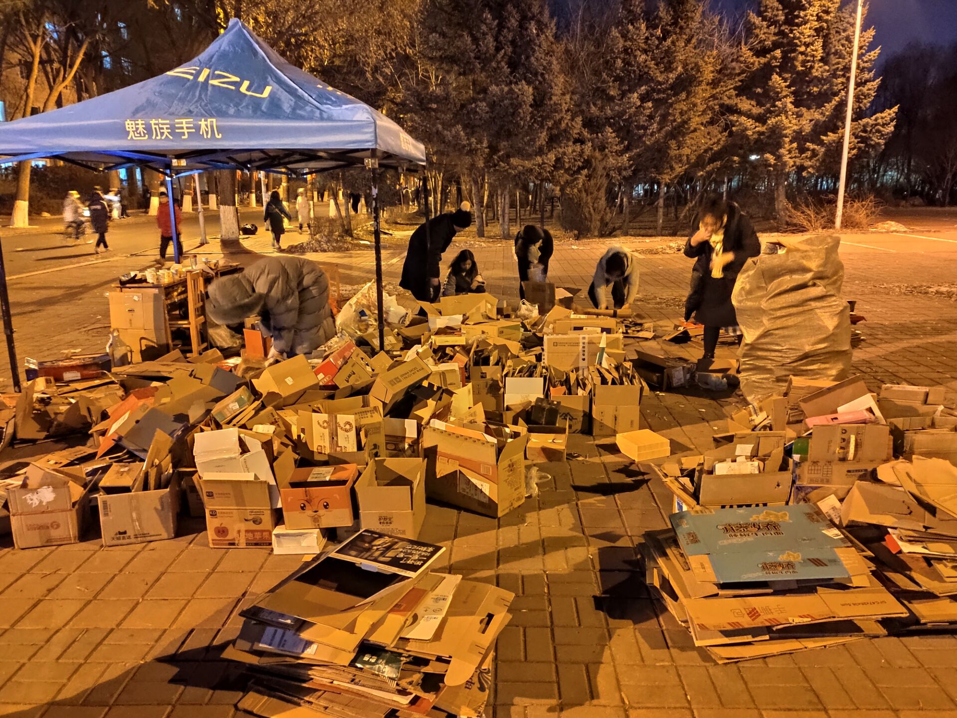 志愿者在收到同学们捐的纸箱后,及时进行了纸塑分离,并将完好的纸箱和破损的纸箱分开。根据纸箱的大小进行分类,分开放置,并准备了尼龙绳等用于捆绑纸箱的物品,为以后的回收工作和回收工作人员减少了麻烦,使得场地尽量整洁。当天每班值班志愿者工作结束后,也对场地进行了整理清洁并签退,最后一班结束后,所有志愿者们到场进行了结束签到并清洁了场地。