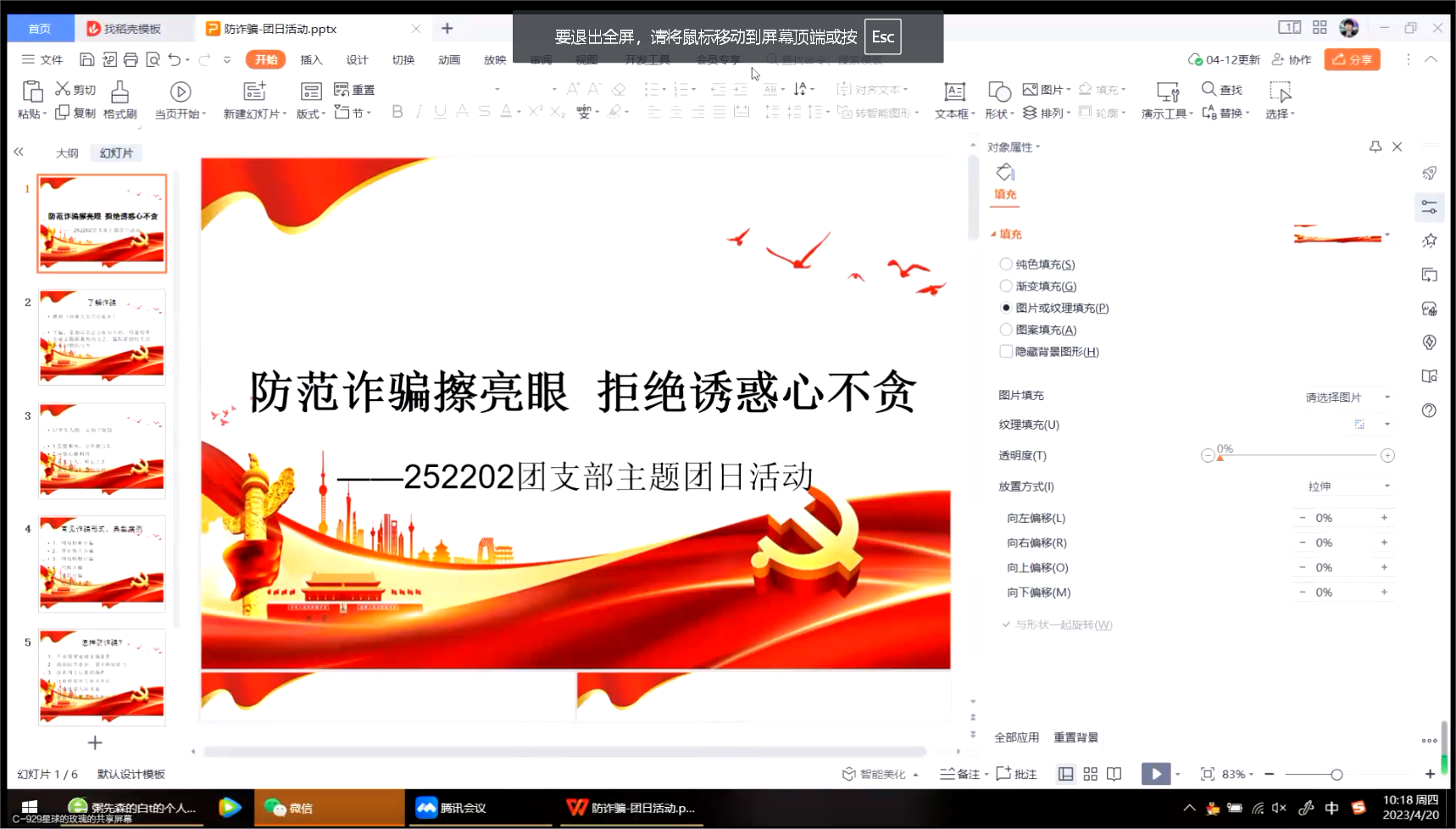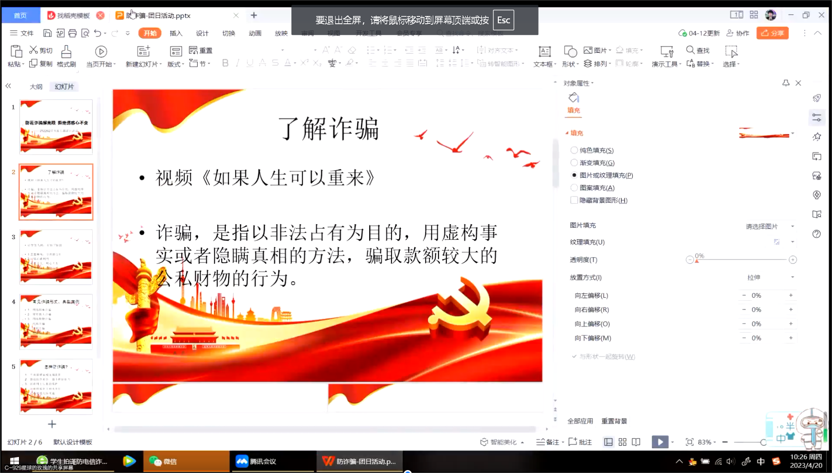 当今社会,电信诈骗案的手段层出不穷。为进一步扩大反诈宣传覆盖面,提高各同学的反诈骗意识、维护大家的财产安全,哈哈体育252202班团支部于4月20日上午十点在团支书郭诗语的带领下,于线上开展“防范诈骗擦亮眼 拒绝诱惑心不贪”反电信网络诈骗宣传教育主题团日活动。本次团日活动共有包括支部内29名共青团员在内的34位青年参加。