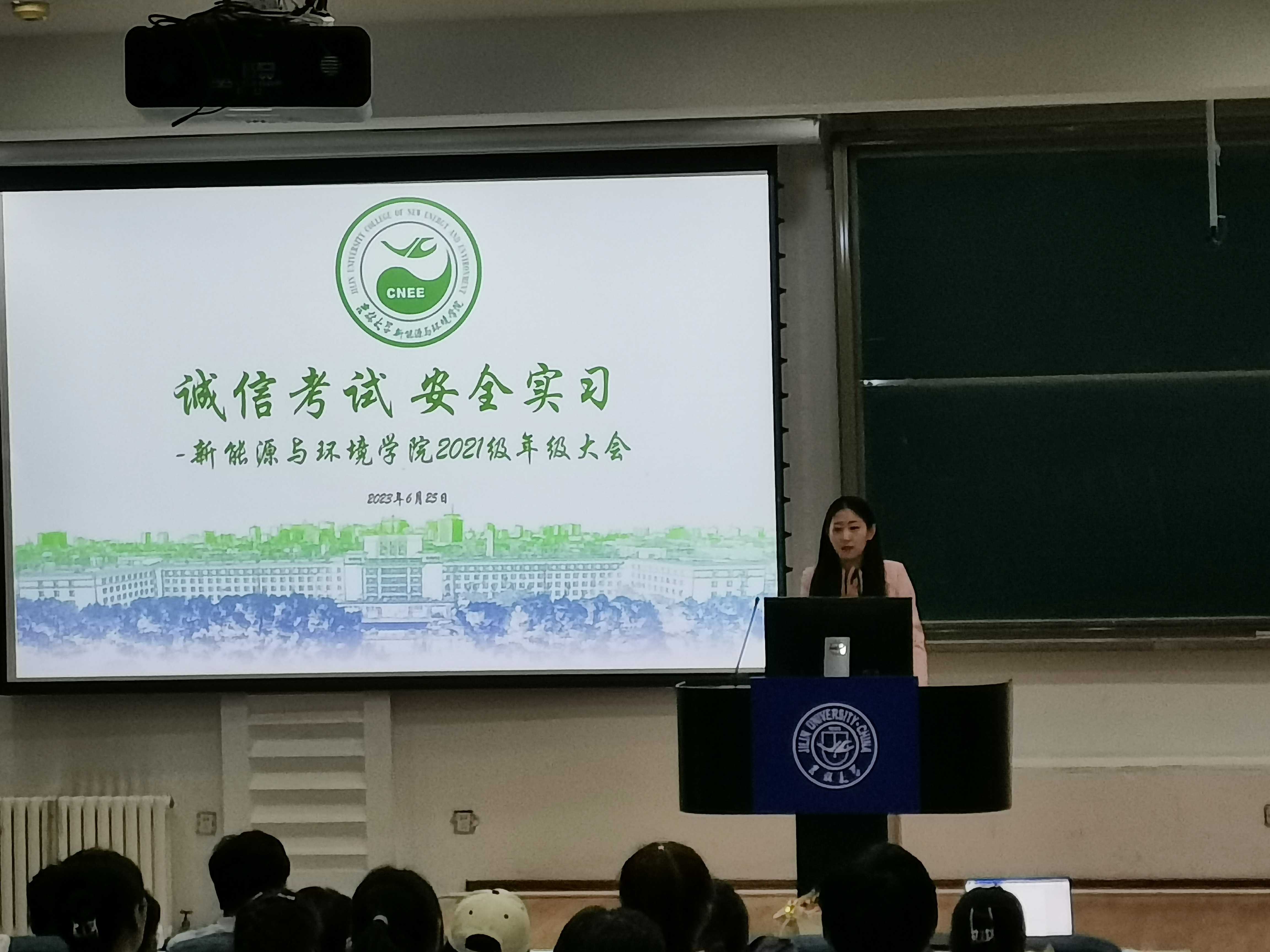 期末考试和教学实习即将到来,为进一步增强员工责任意识和安全意识,2023年6月20日下午,2021级同学举行年级大会,讲解有关诚信考试、教学实习、搬寝合寝及“端午”假期期间安全注意事项,辅导员李薇老师主持本次大会。