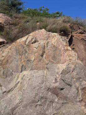 9月15日早9:00,在李杰老师的带领下,同学们对钓鱼台海滨地貌进行了全面的考察。虽然沿途路途较为陡峭,但是同学们仍紧紧追随老师的脚步。在老师的耐心、专业的讲解下,同学们对滨海海岸带岩石进行了现场学习,同时对其分类、形成次序等内容进行了深入学习。