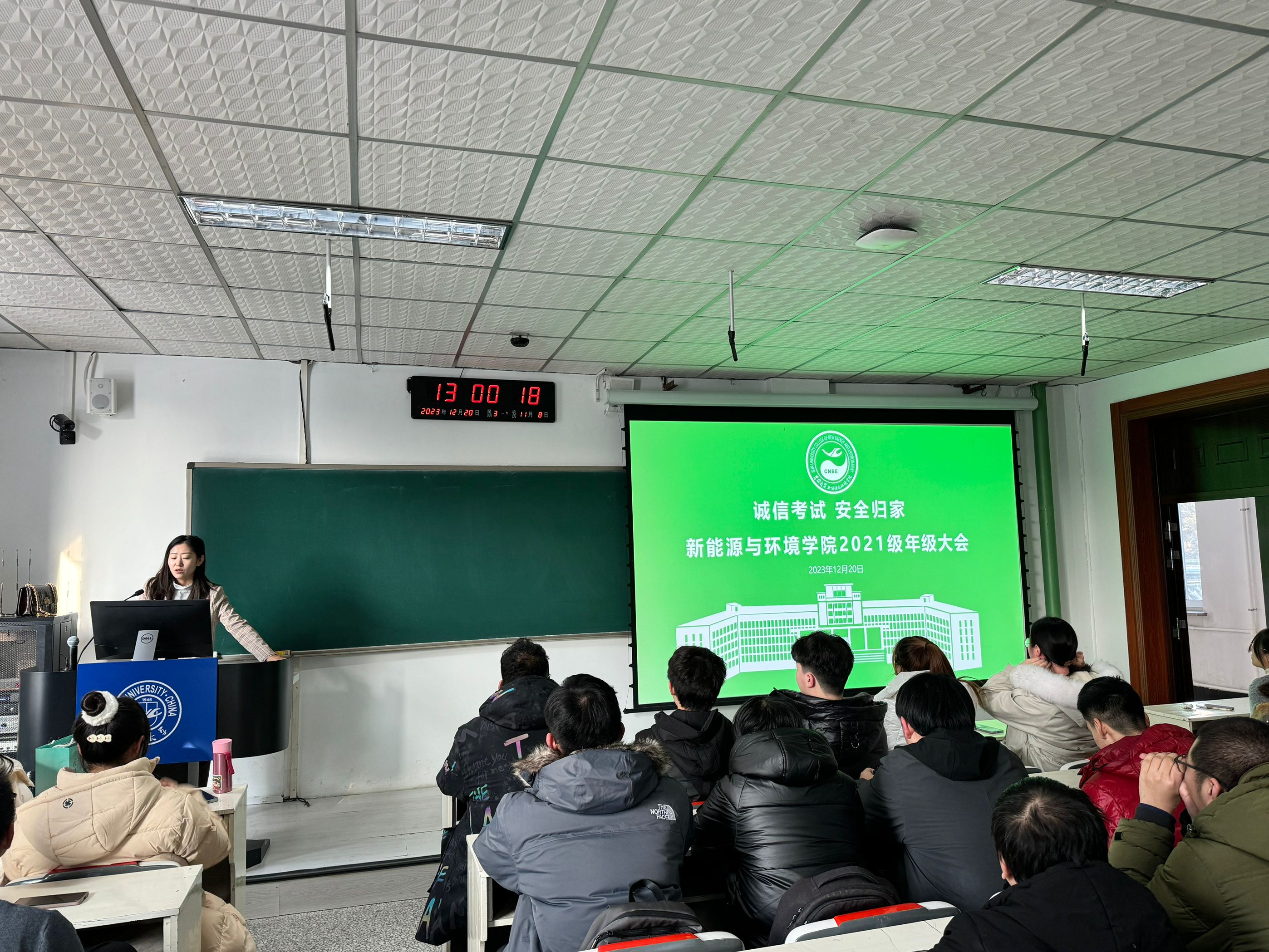 岁月不居,时节如流,这个充实而忙碌的学期也将迎来尾声。在期末周即将来临之际,为了帮助同学们顺利通过期末周的考试,再次强调考试规范与考试纪律,助力同学们度过安全愉快的假期,2023年12月20日,在辅导员李薇老师的主持下,2021级年级大会如约召开,会议主题为“诚信考试,安全归家”。