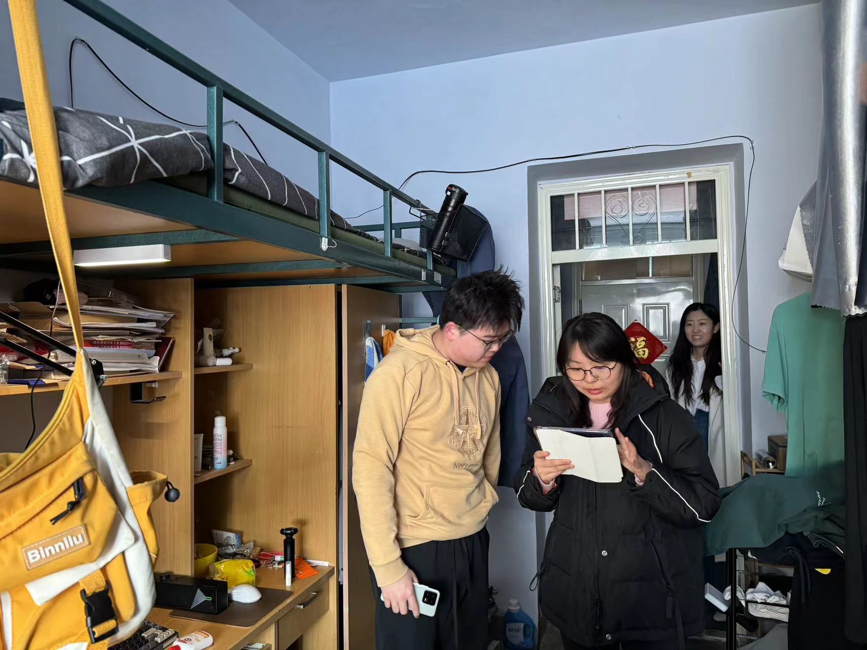 本次寝室走访工作主要从两方面开展。一方面是通过与员工面对面交流了解员工寒假情况,叮嘱同学们在校园内、公共区域等注意自身安全,关注员工们身心状况,解决员工“急难愁盼”问题,并对于有特殊情况的员工,给予关心与照顾。