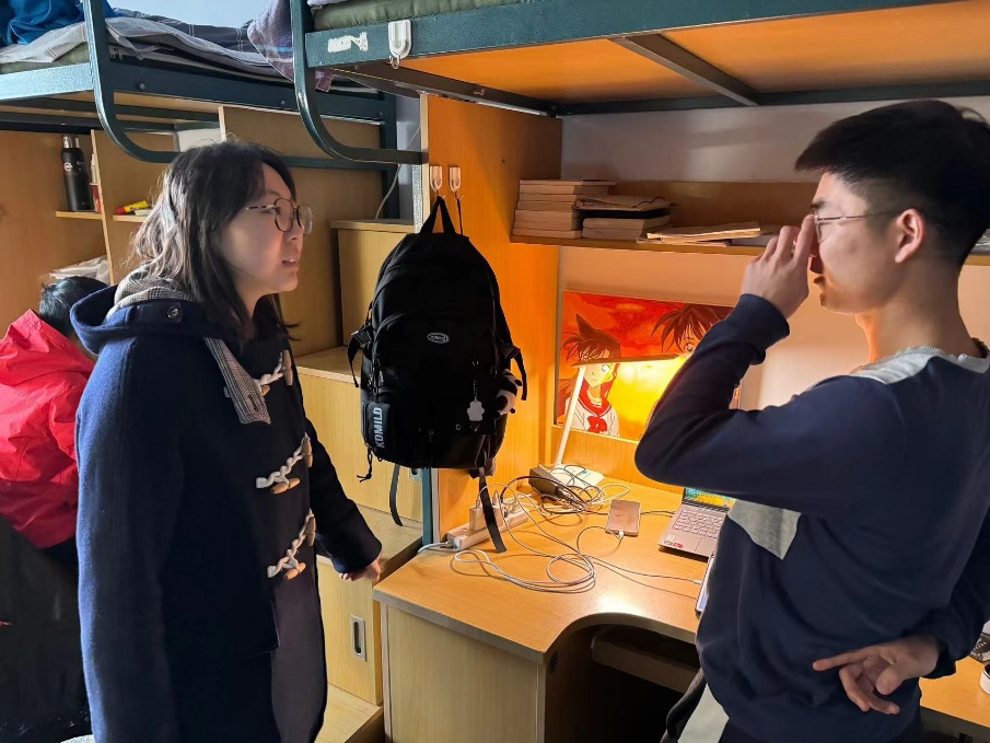 3月22日,2020级辅导员霍美汐老师到朝阳校区五公寓、七公寓员工寝室进行检查。霍老师逐一检查了45间寝室的消防安全和卫生情况,在寝室走访过程中询问毕业年级员工考研、就业情况,对同学们进行鼓励,督促同学们按时完成毕业论文撰写,保持良好的生活作息。