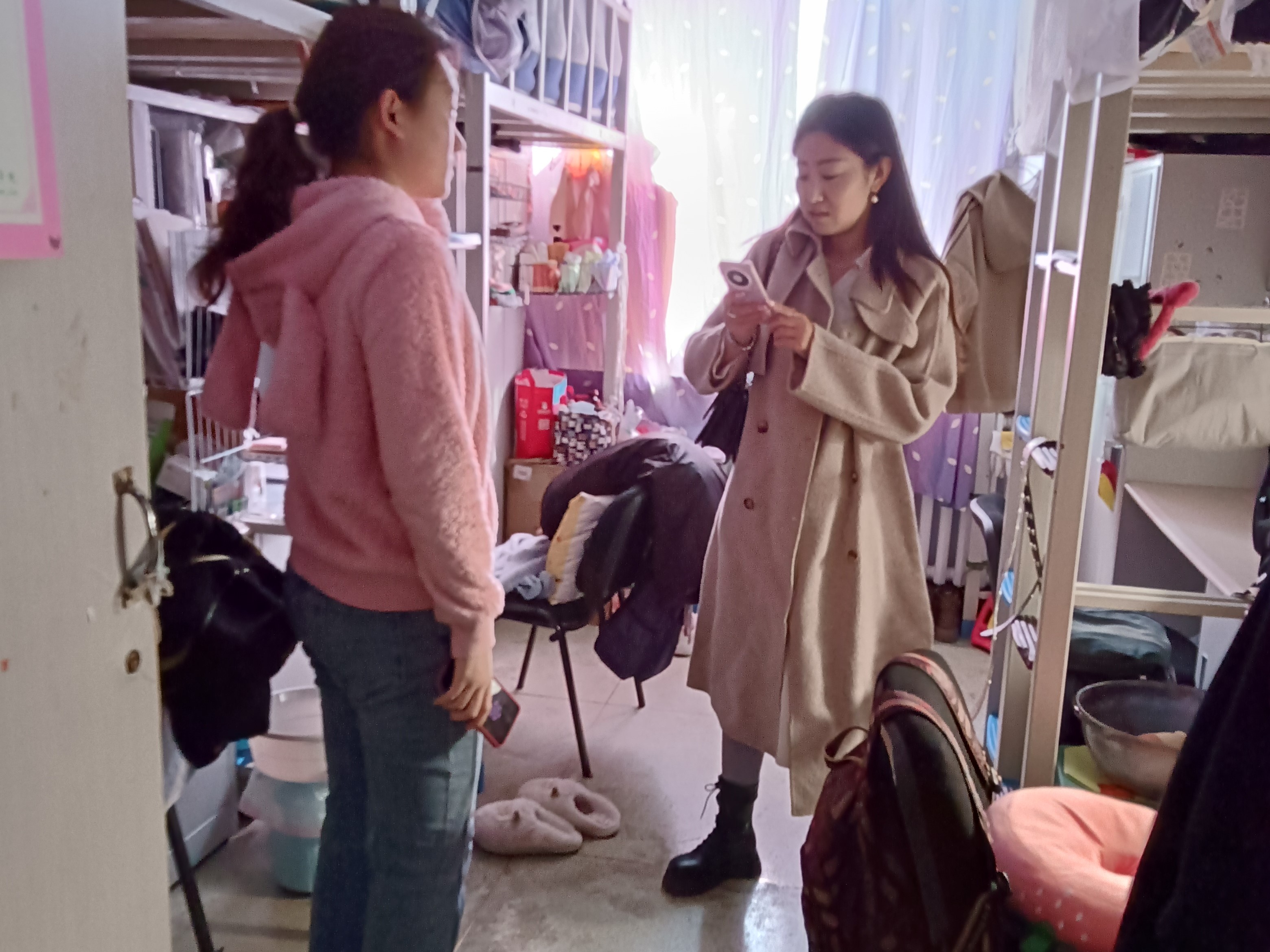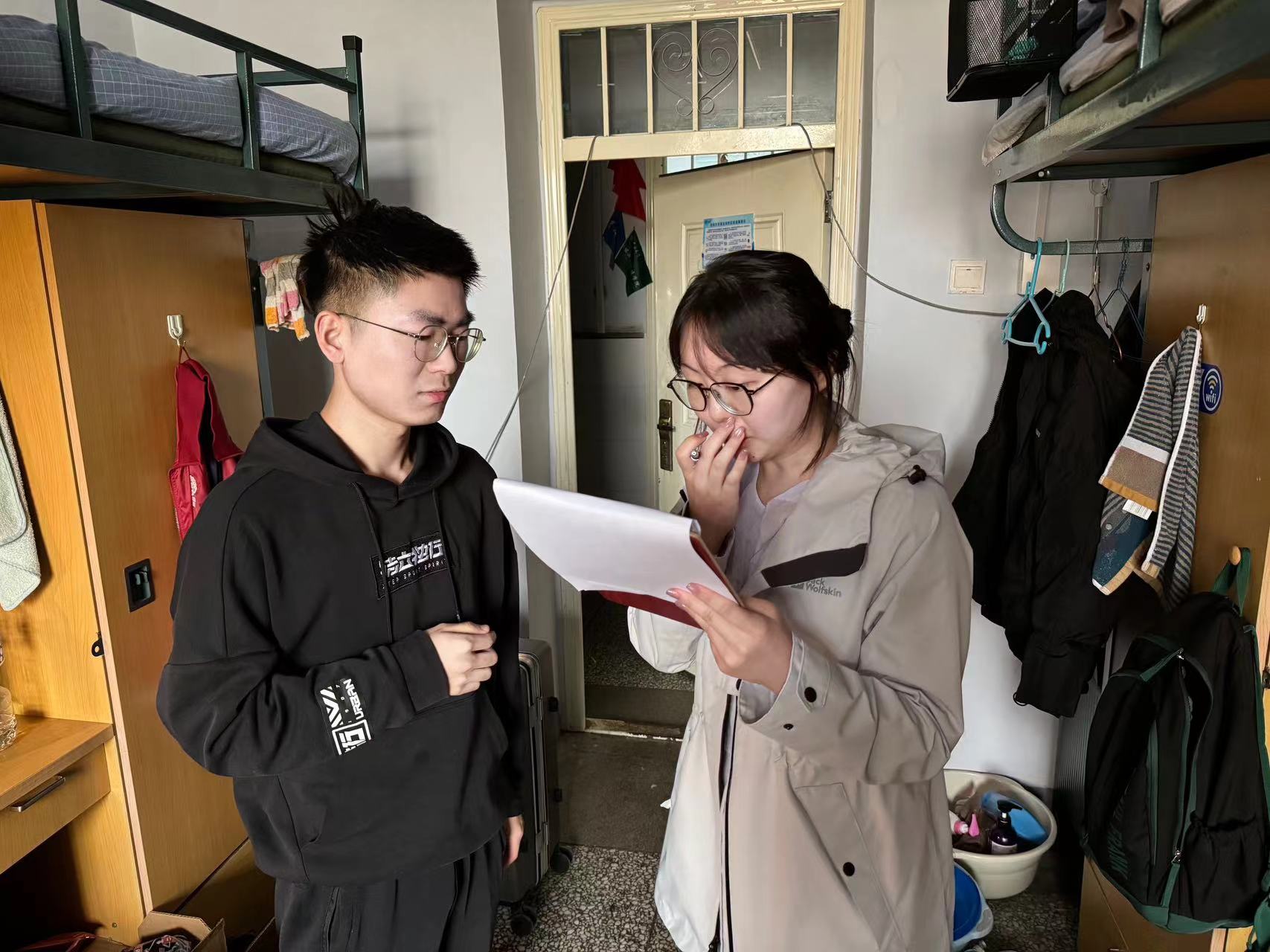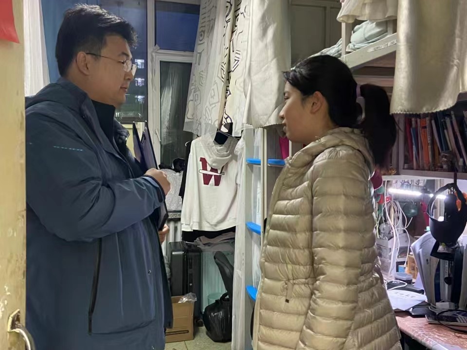 4月12日,2020级辅导员霍美汐老师对HAHA体育朝阳校区五公寓、七公寓42间寝室进行检查,提醒同学们注意寝室卫生,了解同学们毕业去向等情况,强调寝室安全。