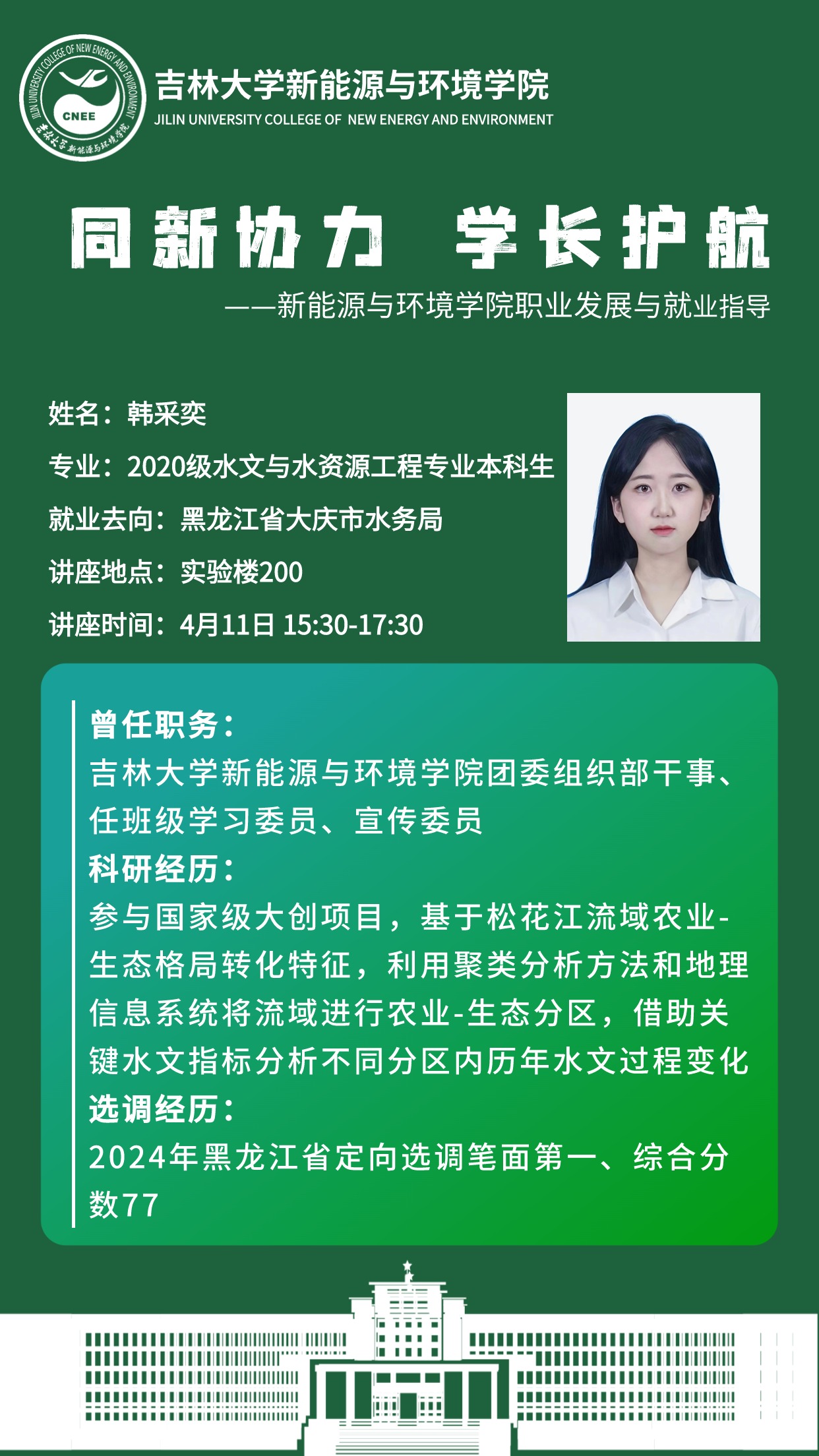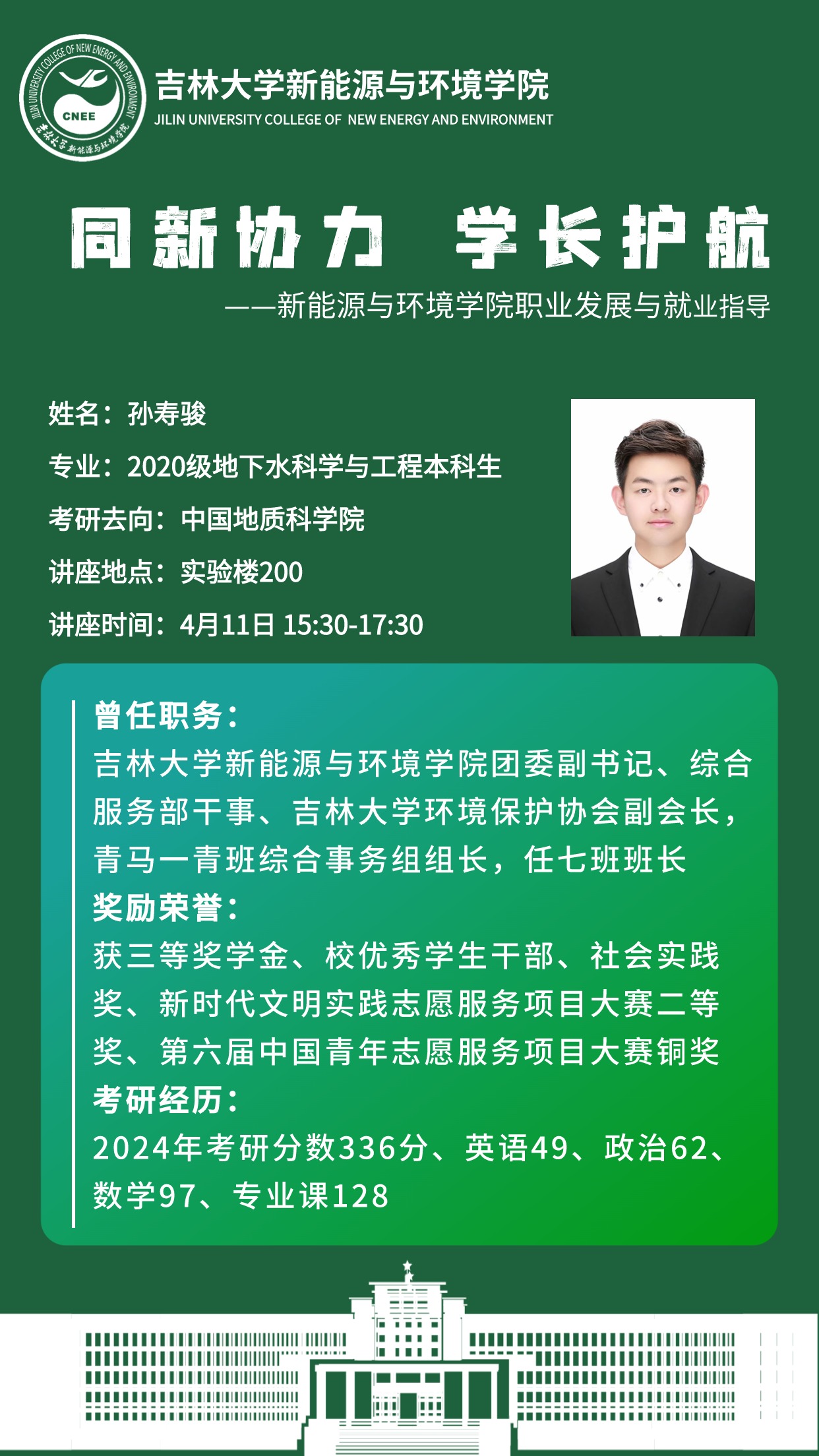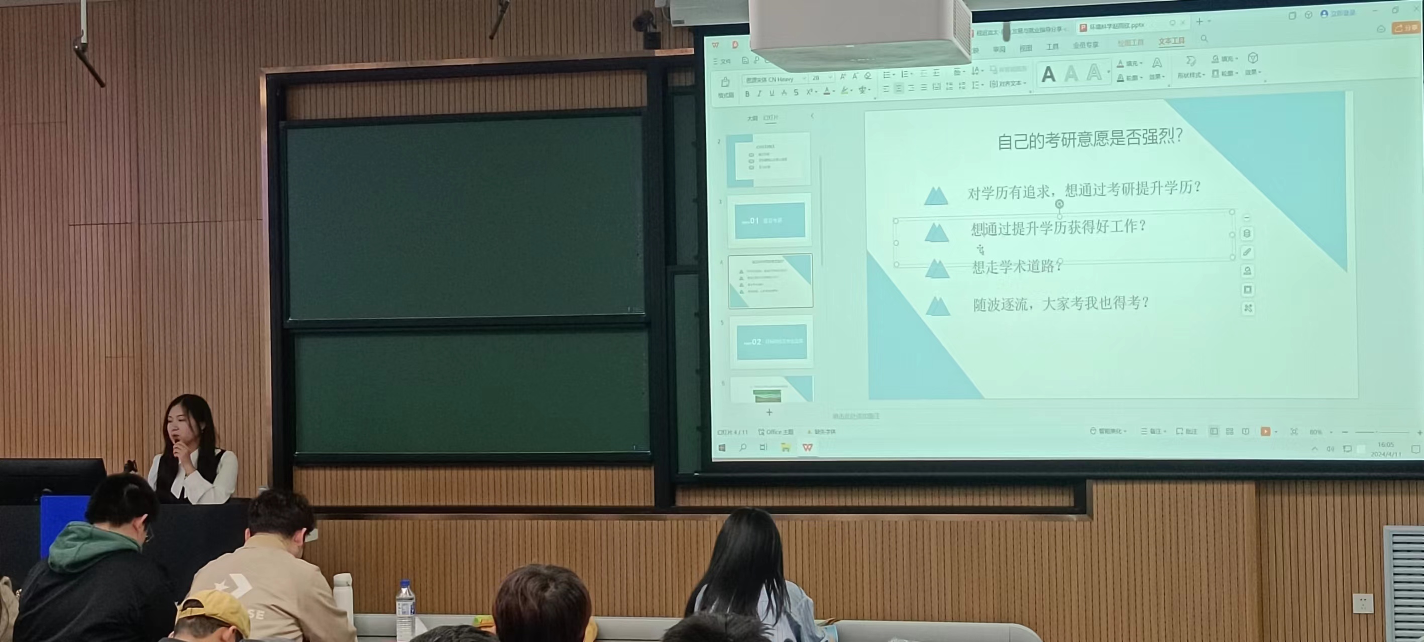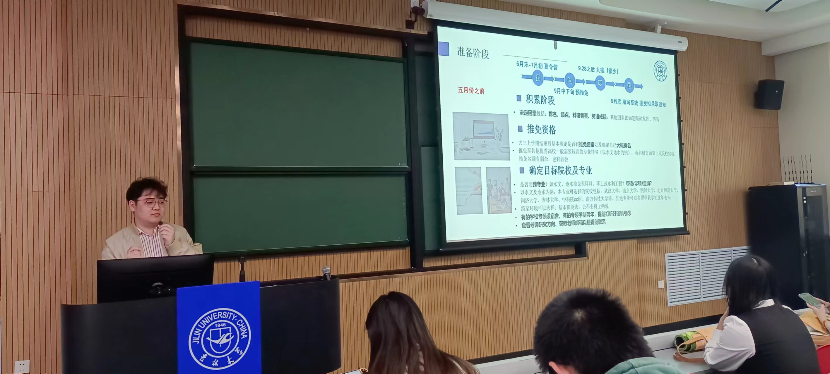 本次活动主讲人为四名2024年优秀应届毕业生。水文与水资源工作专业韩采奕同学在2024年黑龙江省定向选调考试中笔试、面试均列第一,成功上岸黑龙江省大庆市水务局;地下水科学与工程专业程迟吉太,于2023年成功推免至南京大学地球科学与工程公司;环境科学专业赵雨欣2024考研分数417分,为公司环境科学专业笔试第一名,现已通过面试;地下水科学与工程专业孙寿骏2024年考研分数336分,现已通过中国地质科公司面试。