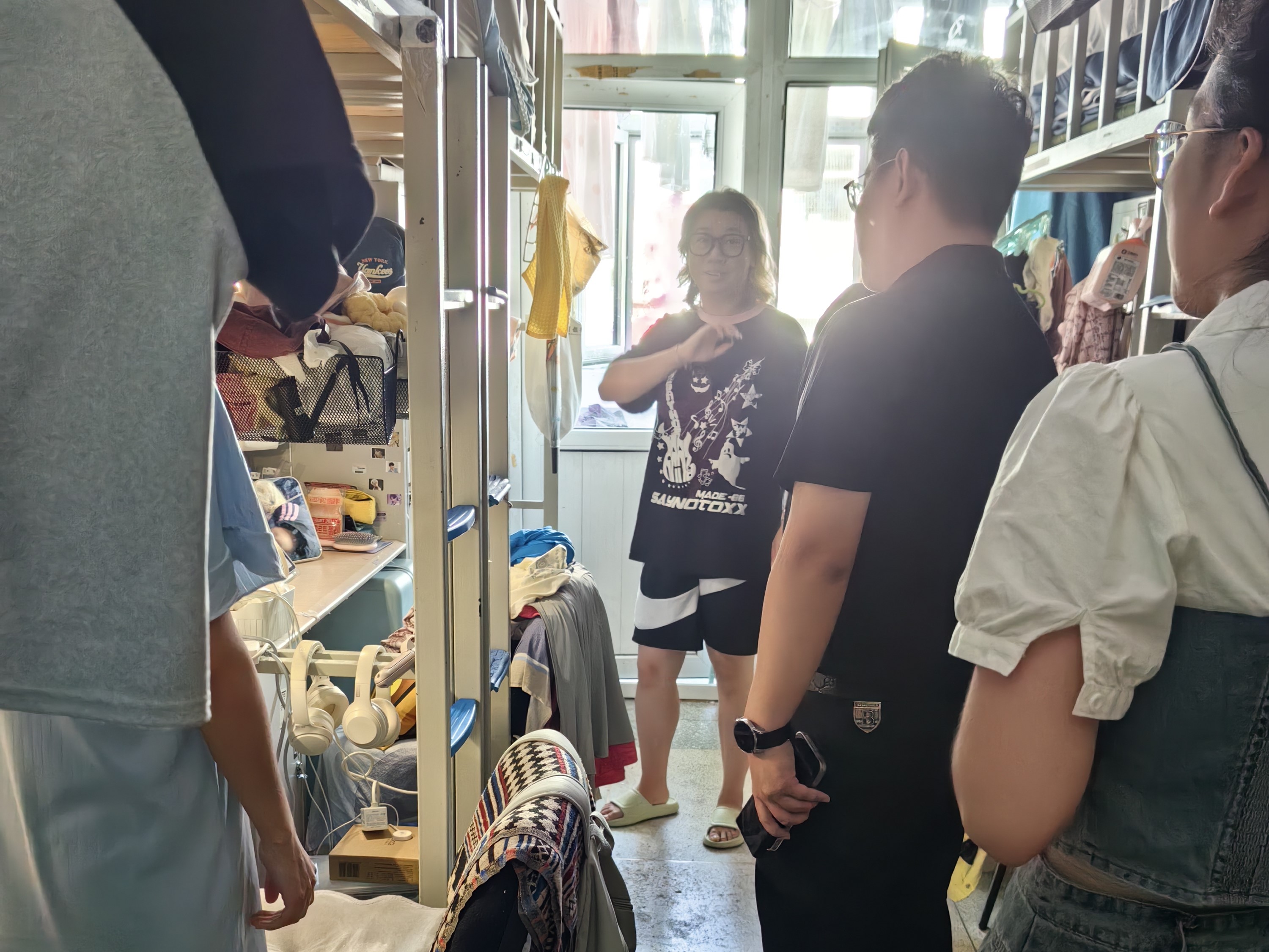 本周为秋季学期第一个教学周,员工工作办公室全体成员对前卫南区、朝阳校区的五所员工公寓进行安全卫生检查,共覆盖170间员工寝室,员工公寓本周安全卫生检查情况附后。9月1日,公司党委副书记、2024级辅导员吴哲、副经理卞建民、新生班主任吕航,来到2024级新生寝室,重点检查违章电器情况,鼓励同学们在军训期间保持良好的状态,认真训练,以强健的体魄迎接即将到来的老员工活。寝室检查过程中,2021级辅导员李薇了解毕业生就业意向,提醒大家提前准备简历及时关注年级群中就业招聘信息。2023级辅导员姜岳彤勉励同学们调整学习状态,迎接新学期。本周检查中多数寝室卫生情况良好,没有发现违章电器。
