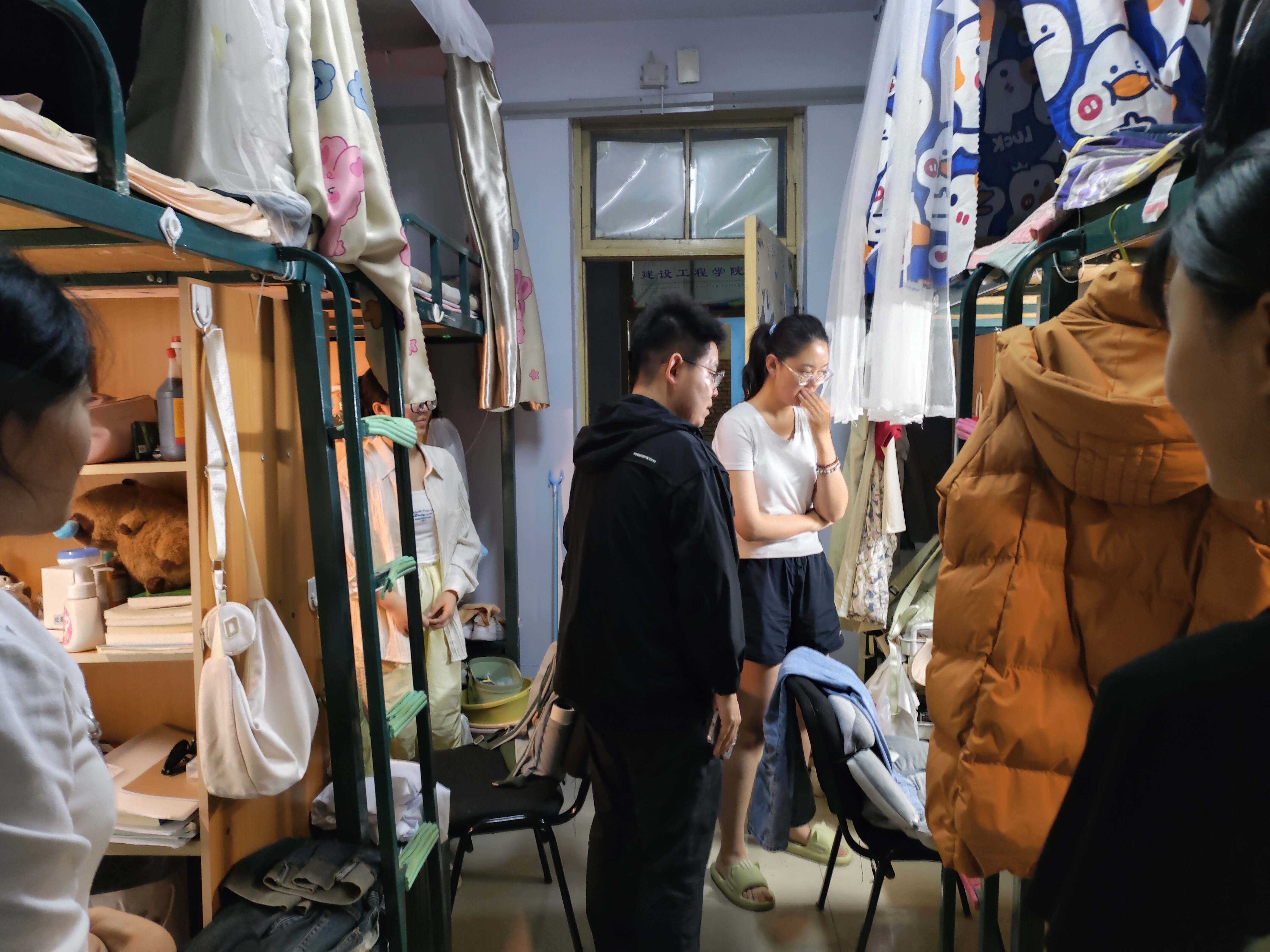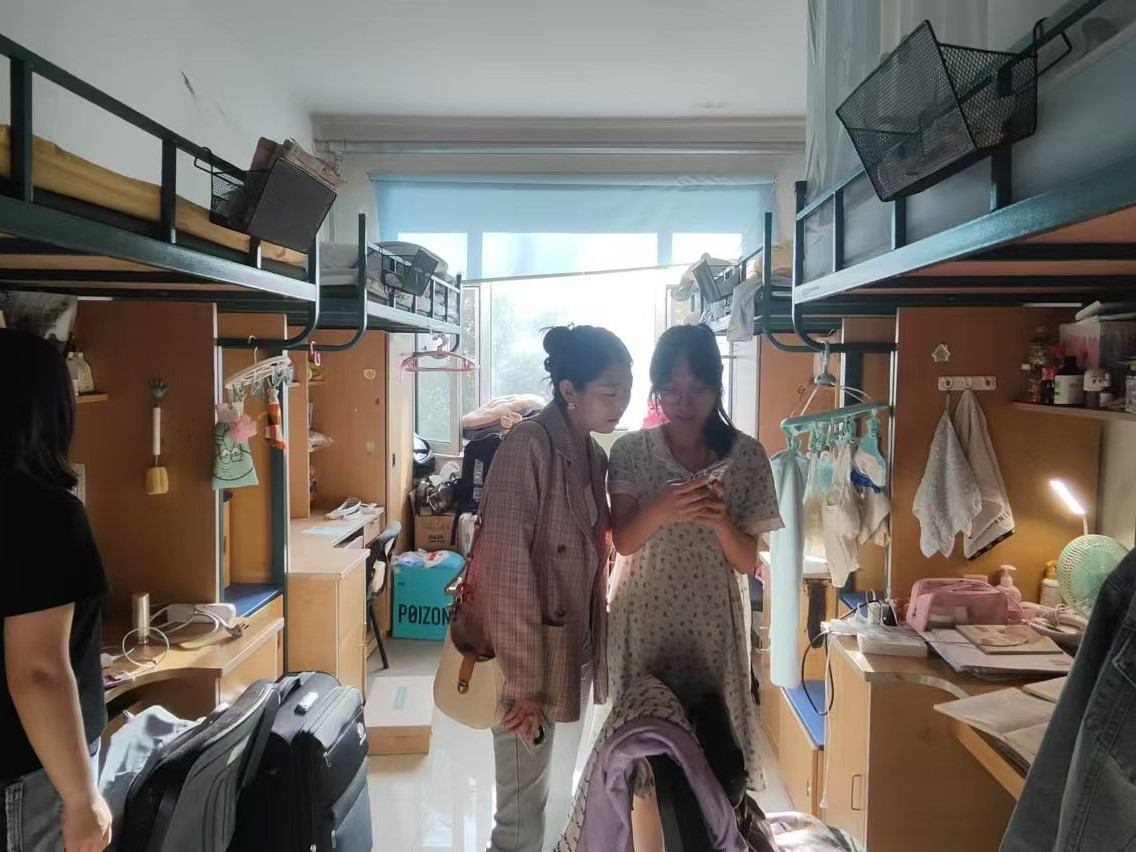 9月14日,2021级辅导员李薇老师进入朝阳五公寓、朝阳七公寓对寝室卫生进行检查,同时核对员工在校离校情况,提醒假期外出同学们注意安全保持联络。