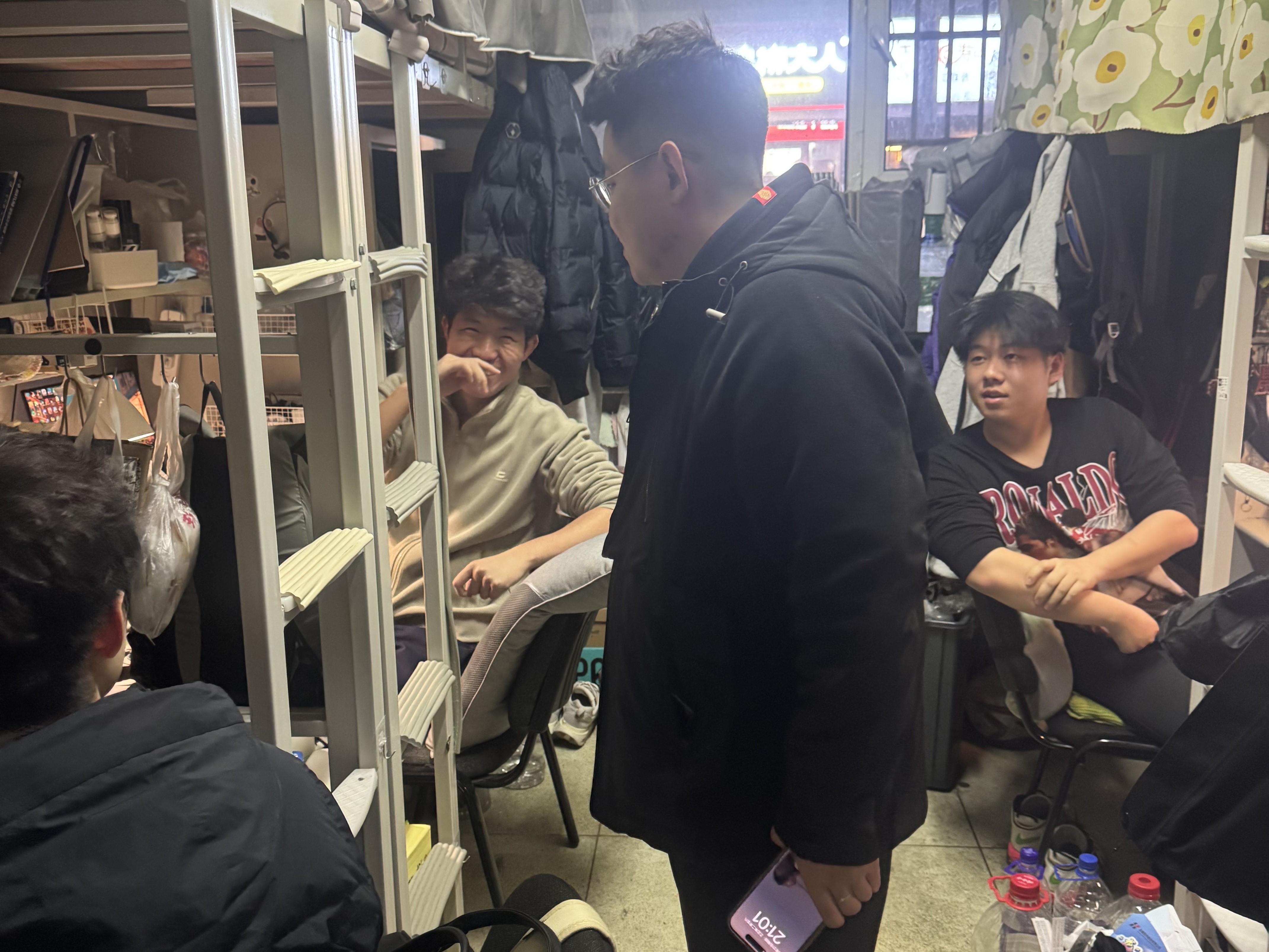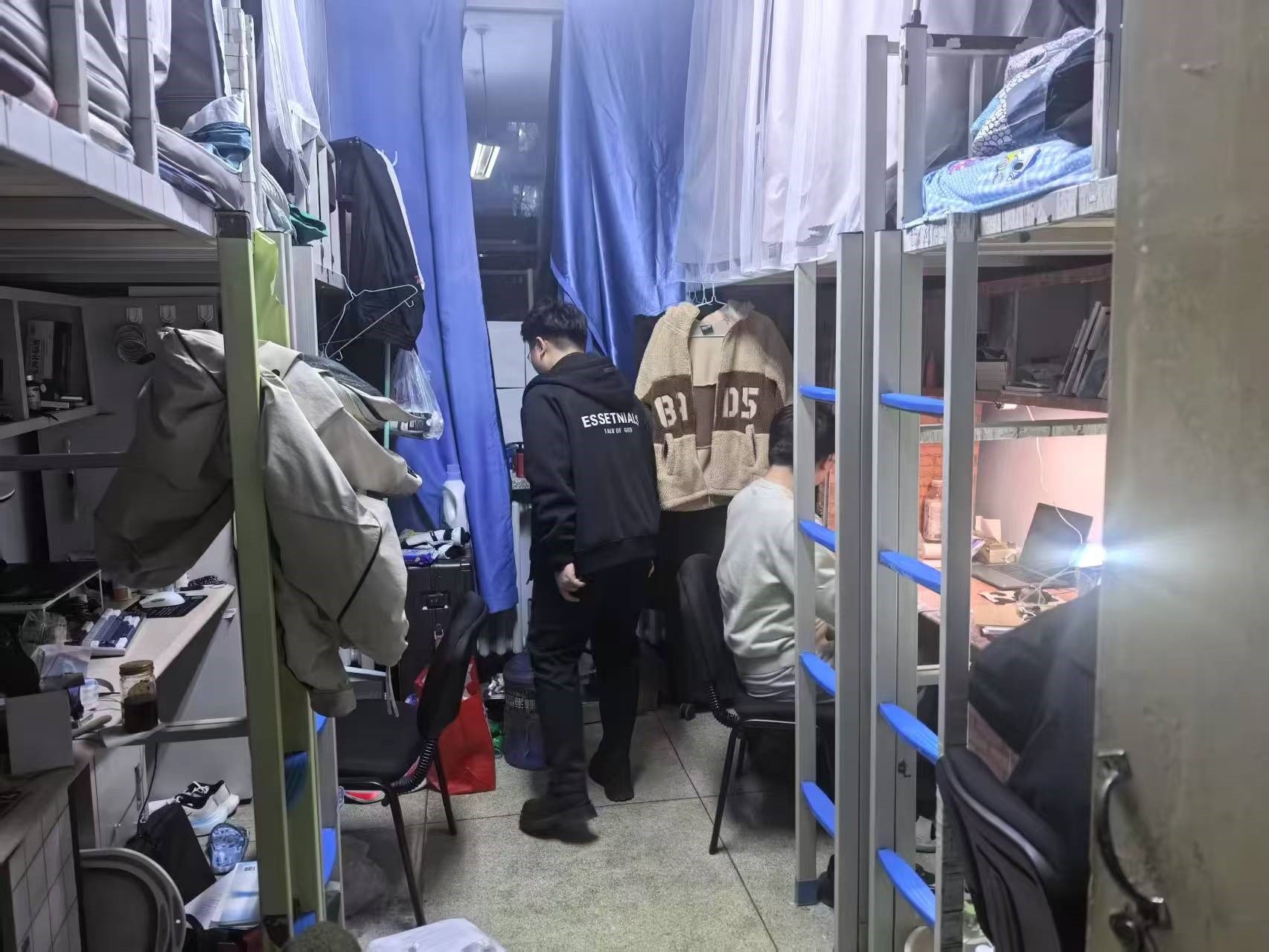 3月27日,2024级新生辅导员助理姜兆轩进入中心校区南苑一公寓,检查寝室卫生及违章电器使用情况,同时了解转专业员工寝室调整情况,叮嘱他们及时与转入公司取得联系不要错过通知。