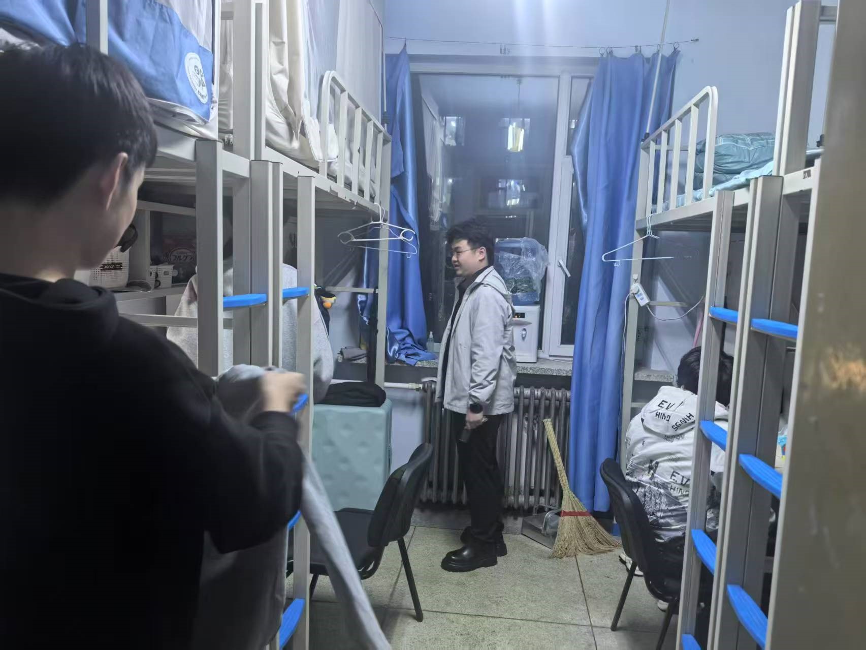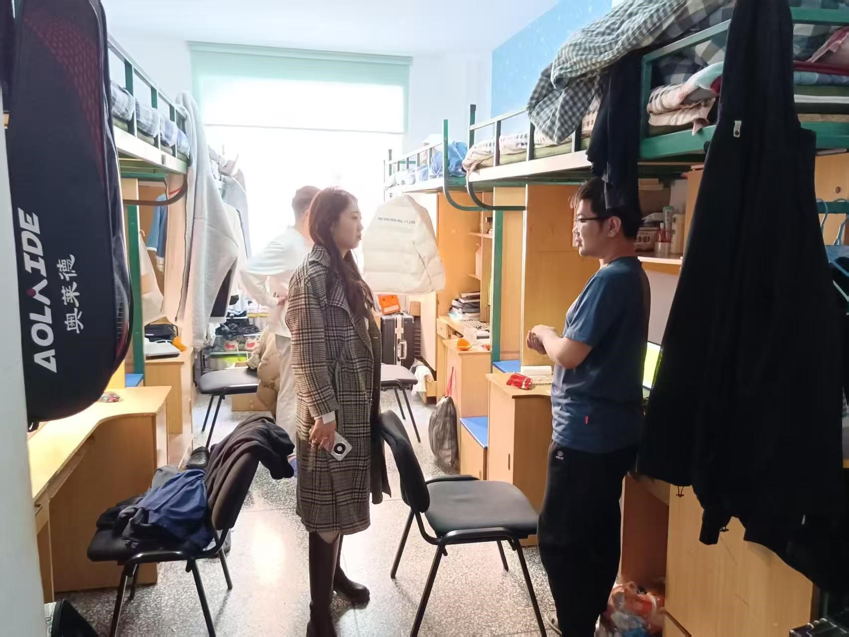 4月9日,2021级辅导员李薇老师进入朝阳五公寓、朝阳七公寓对寝室卫生、消防安全进行检查,并在走寝过程中了解员工考研调剂情况和求职员工就业进程。