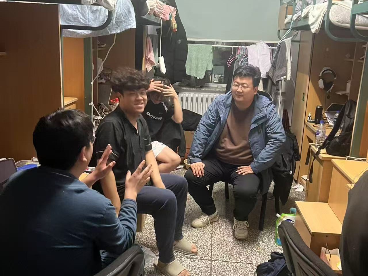 4月9日,2023级辅导员姜岳彤老师进入南苑一公寓寝室,了解转专业同学搬寝进度,同时对部分寝室进行调整,并提醒同学们定期收拾宿舍卫生。同日,姜老师进入《毛泽东思想和中国特色社会主义理论体系概论》课堂,了解员工到课情况,本次课程共1人请假。