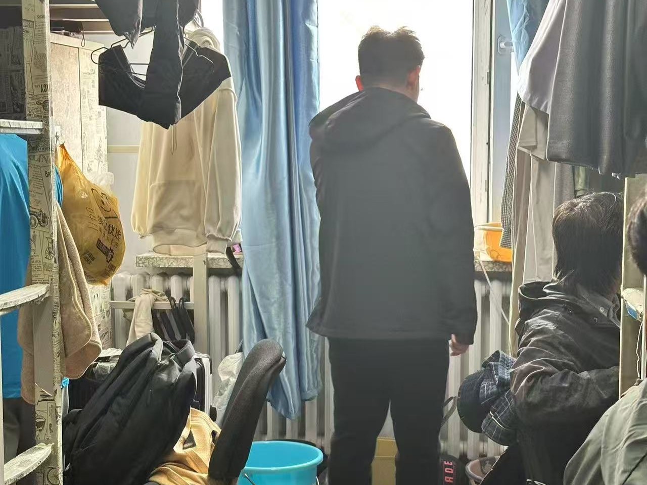 4月9日,2024级新生辅导员助理姜兆轩进入南苑一公寓对寝室卫生情况进行检查,同时查看转出员工空余床位情况。