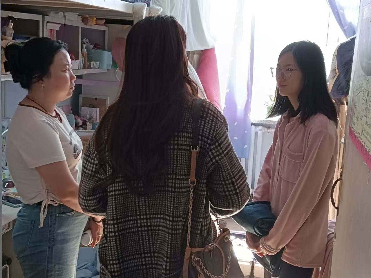 4月18日,2021级辅导员李薇老师进入南苑一公寓二公寓检查寝室卫生情况和消防安全情况。走寝过程中,李老师了解考研员工复试情况,以及求职员工就业进程。