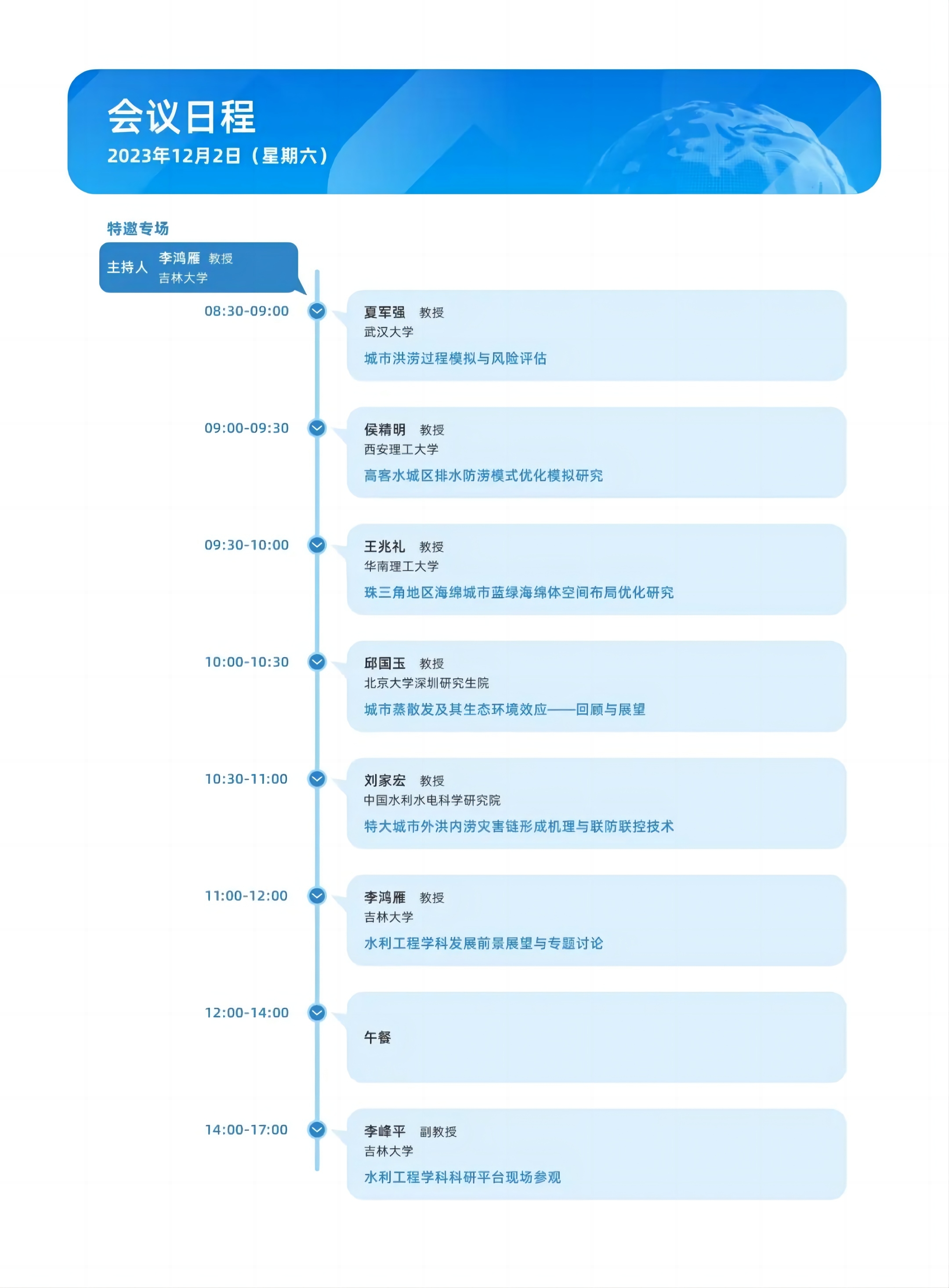 论坛简介:由哈哈体育、水利部数字孪生流域重点实验室主办,韩国忠南国立大学、韩国庆北大学、日本京都大学协办的“第六届中日韩水科学论坛”将于2023年12月2-3日在HAHA体育前卫北区理化楼540会议室召开,会议结合线下和线上形式,邀请多名国内外水科学领域专家学者,围绕“数字孪生与洪涝模拟”主题,分享、交流智慧水利和数字孪生领域的最新研究成果,探讨洪涝灾害过程模拟与风险管理中的前沿科学问题。