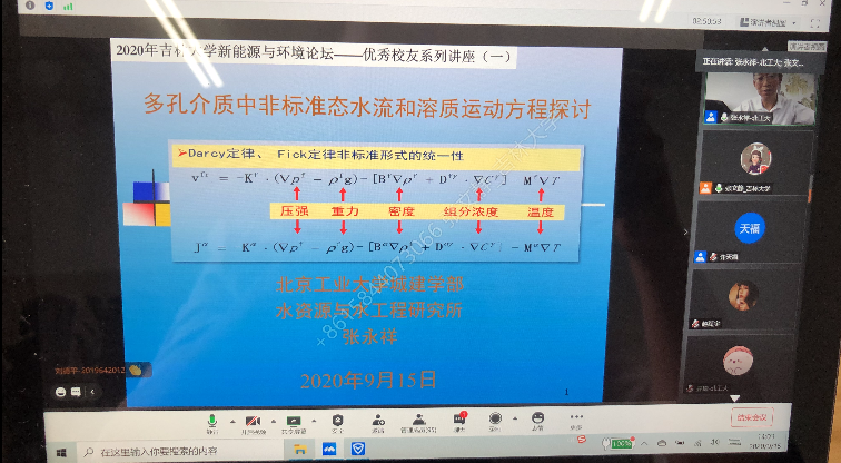 各位优秀学长结合多年来的工作心得和研究成果,给公司师生带来了多场精彩报告。张永祥教授对比介绍不同时期多孔介质水流和溶质运动方程的建立方法和形式,重点介绍基于统计热力学的地下水动力学方程的建立过程。王洪涛教授重点介绍了我国水处理剩余污泥和生活垃圾产生量巨大,在简介主要技术路线的基础上探讨我国应有的选择。曾溅辉教授重点介绍了沉积盆地地下水流动特征,讨论了地下水流动对油气藏形成和分布的影响,以及有关地下水对油气藏形成和分布影响的具体实例。李广贺教授结合我国水土污染治理国家修复和技术发展,重点介绍了地下水污染修复的相关政策和技术。井立强教授介绍了近年来发展的系列基于光生电荷调控的改性策略,以及所采用策略显著地改善材料光生电荷分离状况的关键机制。严刚副经理介绍了我国大气环境规划发展历程、主要技术方法及未来管理需求与展望。胡春教授重点介绍了如何通过表面微电场的构建,解决传统芬顿体系在实际应用中的瓶颈问题。束龙仓教授回顾了32年来从事地下水研究工作的足迹,介绍了济南泉水研究的关键环节、泉水持续喷涌的科学应对方法。