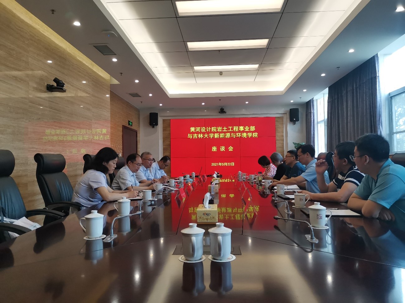 22日上午,汪祥松一行还前往员工所在单位黄河勘测规划设计研究院有限公司进行合作交流。座谈会上,黄河设计院岩土工程事业部副总经理房后国等多位员工介绍了自己部门发展情况,领域前沿技术和员工的发展现状。汪书记和各位老师对员工们的工作业绩给予充分肯定和赞许。双方就科研与生产实践如何有机结合,专业领域如何实现突破发展,如何增强新动力等展开探讨,最后,双方对于校企合作、人才需求、项目开发等多个方面,以及“产学研用”一体化的构想,达成了框架性的初步协议,一致同意尽快细化落实。