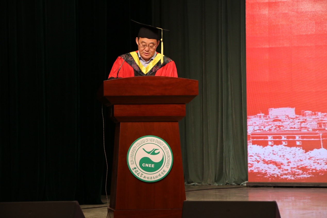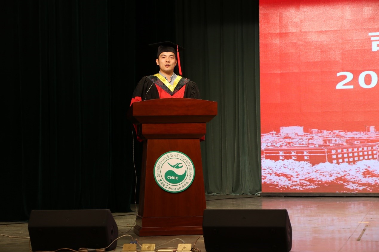 毕业本科生代表李春瑞发言,他表示会深刻铭记母校所教会的求实创新、励志图强的精神,铭记身为地学人的果敢坚毅、顽强拼搏。不论走到哪里,都会在未来的人生中,创造属于自己的价值,用实际行动讲好吉大故事,传承吉大精神!