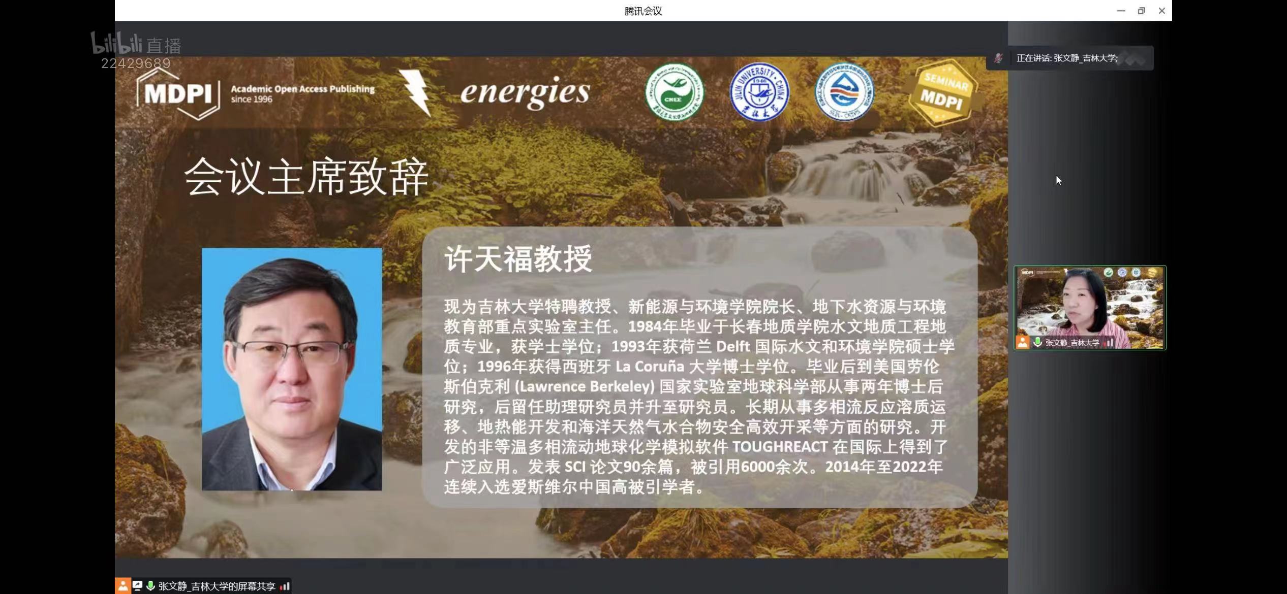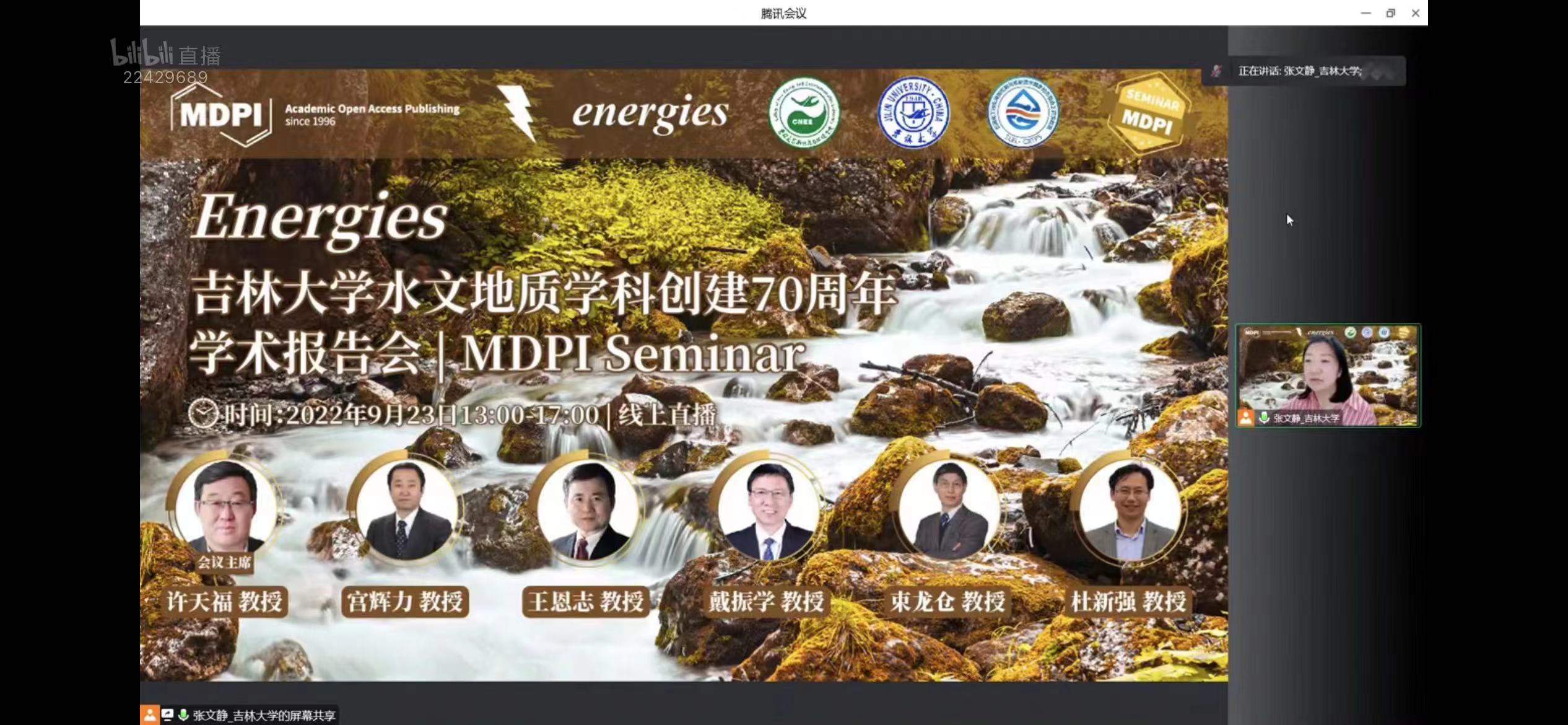 2022年9月23日下午,哈哈体育携手Energies 期刊通过MDPI线上直播平台举办了首场庆祝HAHA体育水文地质学科(原长春地质公司水工系)创建70周年学术报告会。本次报告会由许天福经理担任会议主席,特别邀请:首都师范大学宫辉力教授、清华大学王恩志教授、HAHA体育戴振学教授、河海大学束龙仓教授以及HAHA体育杜新强教授,围绕水文地质学的相关研究进展为广大师生带来精彩纷呈的学术讲座。本次报告会由经理助理张文静教授主持,共吸引了MDPI多个直播平台相关领域专业观众累计超2万多人次的在线参与和观看。