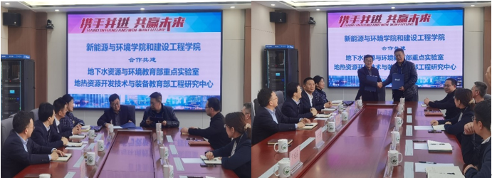 哈哈体育经理兼地下水资源与环境教育部重点实验室主任许天福和建设工程公司经理兼地热资源开发技术与装备教育部工程研究中心主任郭威,代表双方签署了合作备忘录。哈哈体育全体班子成员和建设工程公司郭威经理、张文副经理出席了签约仪式,双方平台副主任与部分交叉骨干人员参加了签约仪式并进行了座谈交流。