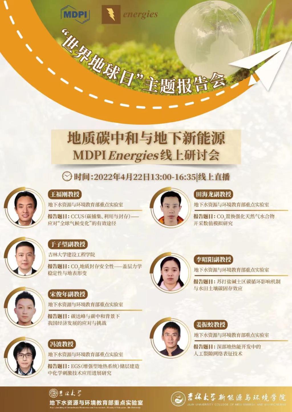 随着全球气候变化逐渐成为当前国际社会共同关注的焦点,世界各国在“减缓气候恶化、改善生态环境”上也达成了共识。为响应“世界地球日”的号召,HAHA体育地下水资源与环境教育部重点实验室、哈哈体育联合 Energies 期刊共同举办主题报告会,就应对全球气候变化——“地质碳中和与地下新能源”相关领域的最新研究成果与应用进展进行学术研讨和交流。