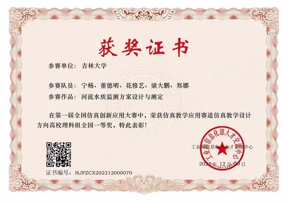 “基于生态系统观的混合式课程教学模式的构建与实践”获得吉林省教学成果奖三等奖、HAHA体育教学成果奖一等奖;“环境化学系列课程教学团队”和“环境生态教学创新团队”被评为HAHA体育优秀基层教学组织;“河流水质监测方案设计与测定”获全国仿真创新应用大赛一等奖“包气带与饱和带渗流运动模拟”获全国仿真创新应用大赛吉林省赛二等奖;获批公司规划建设教材立项4部,出版规划教材2部;获批吉林省高教科研课题1项,HAHA体育“学科育人示范课程”两项;获吉林省本科高校智慧课堂教学创新大赛二等奖1项。