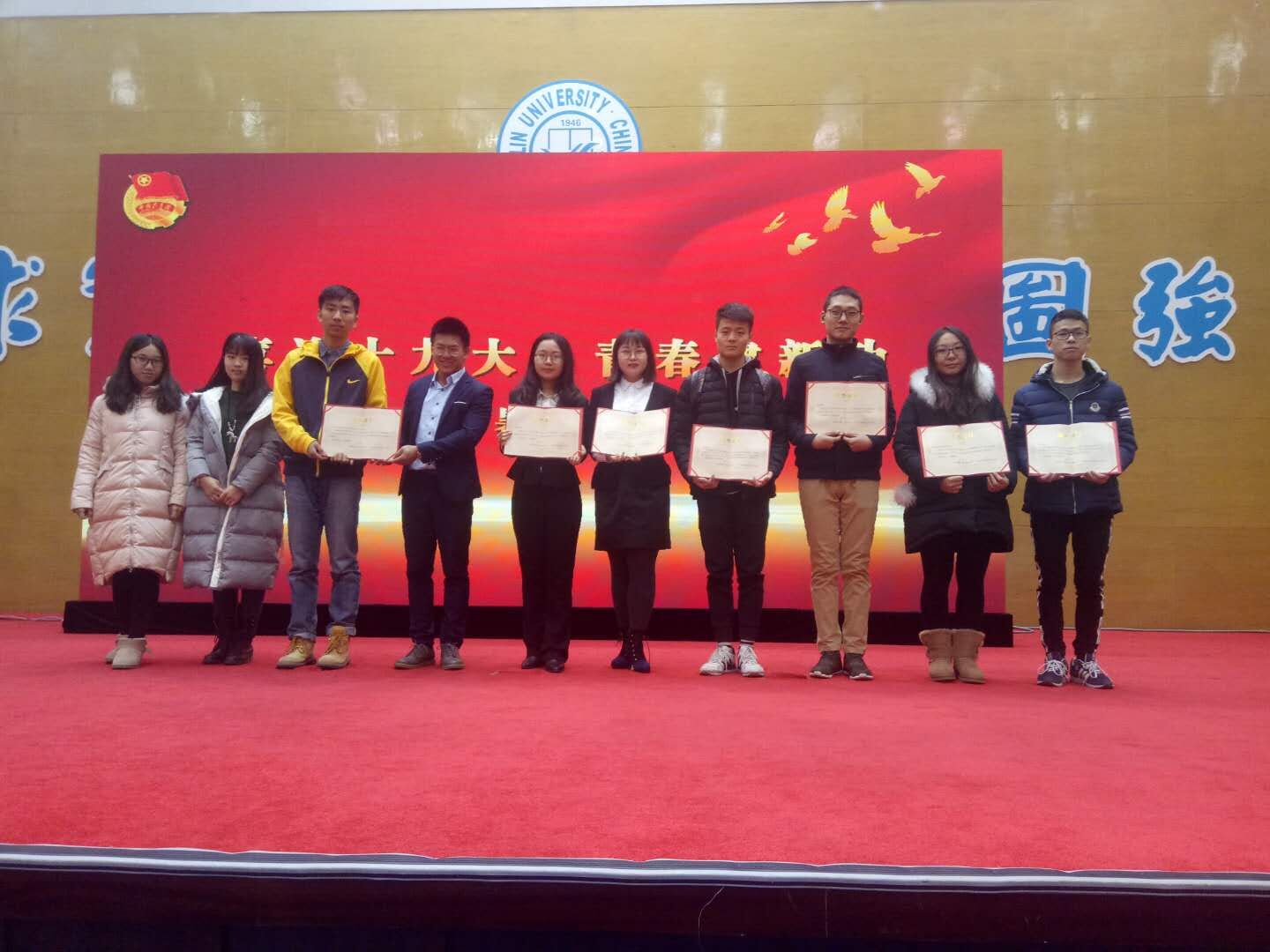 大会第二项为2017年暑期社会实践中的先进个人以及先进集体的颁奖仪式。在此次活动中,公司代表队共获得三项团体奖项,分别为“优秀团队”、“优秀组织单位”以及“优秀宣传报道”三项。同时,付泽鑫、陈凌虹、陈思颜三位同学荣获“活动先进个人”称号,《长白山附近土壤调查与分析》(作者付泽鑫)、《浅谈旅游行业对长白山生态环境的影响》(作者陈凌虹)两篇调研报告荣获“活动优秀调研报告”的称号。员工代表付泽鑫上台接受了表彰。
