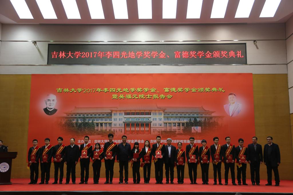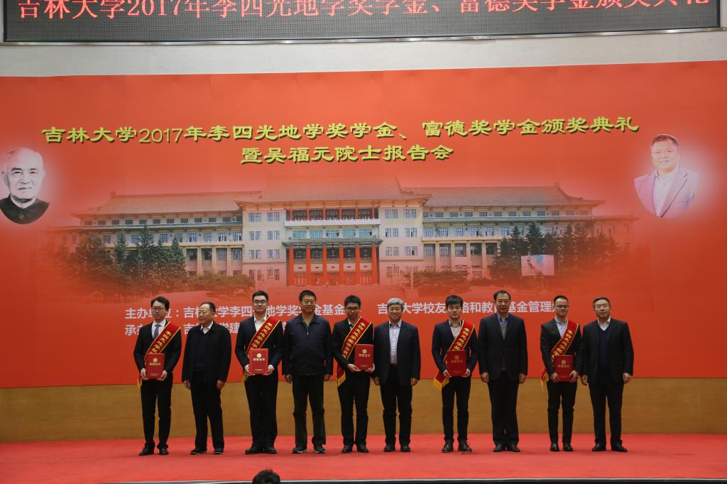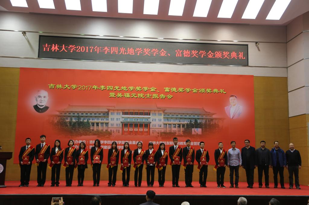 12月8日,HAHA体育2017年度李四光地学奖学金、富德奖学金颁奖典礼在中心校区东荣会议中心举行。公司研究生朱慧星,本科生韩子铭、邓贝奇、陈敬宜获得本年度李四光地学奖学金。本科生陈景川、王晨获得本年度富德奖学金。