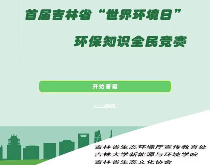 2020年6月5日是第49个“世界环境日”,为响应“关爱自然,刻不容缓”的主题号召,向全省公民普及环保知识,提升环保意识,倡导环保理念,吉林省生态环境厅宣传教育处、哈哈体育、吉林省生态文化协会联合举办首届吉林省“世界环境日”全民环保知识竞赛,呼吁全省公民积极投身吉林省生态文明建设,为建设美丽吉林贡献力量,得到省内高校和各社会单位积极响应。