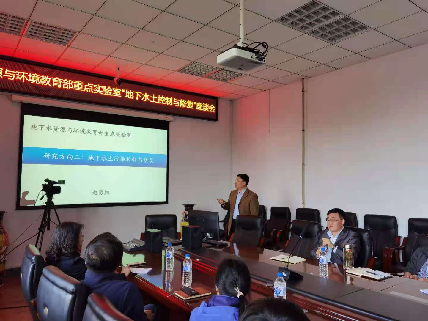 接下来的地下水土污染形成控制与修复学者座谈会围绕地下水土污染形成控制与修复方向的规划和建设进行学术研讨。许天福主任做了教育部重点实验室的情况介绍,赵勇胜教授就“地下水土污染形成控制与修复”研究方向的现状与建设提出了一些思考和建议,学科相关教师积极讨论关于学科发展方向的建设设想。许天福主任做出了总结发言,未来地下水资源与环境教育部重点实验室将发挥作为组织高水平应用基础研究、汇聚优秀人才的“基地和平台”的作用,集思广益,在发展中找不足,齐心建设高水平的教育部重点实验室。
