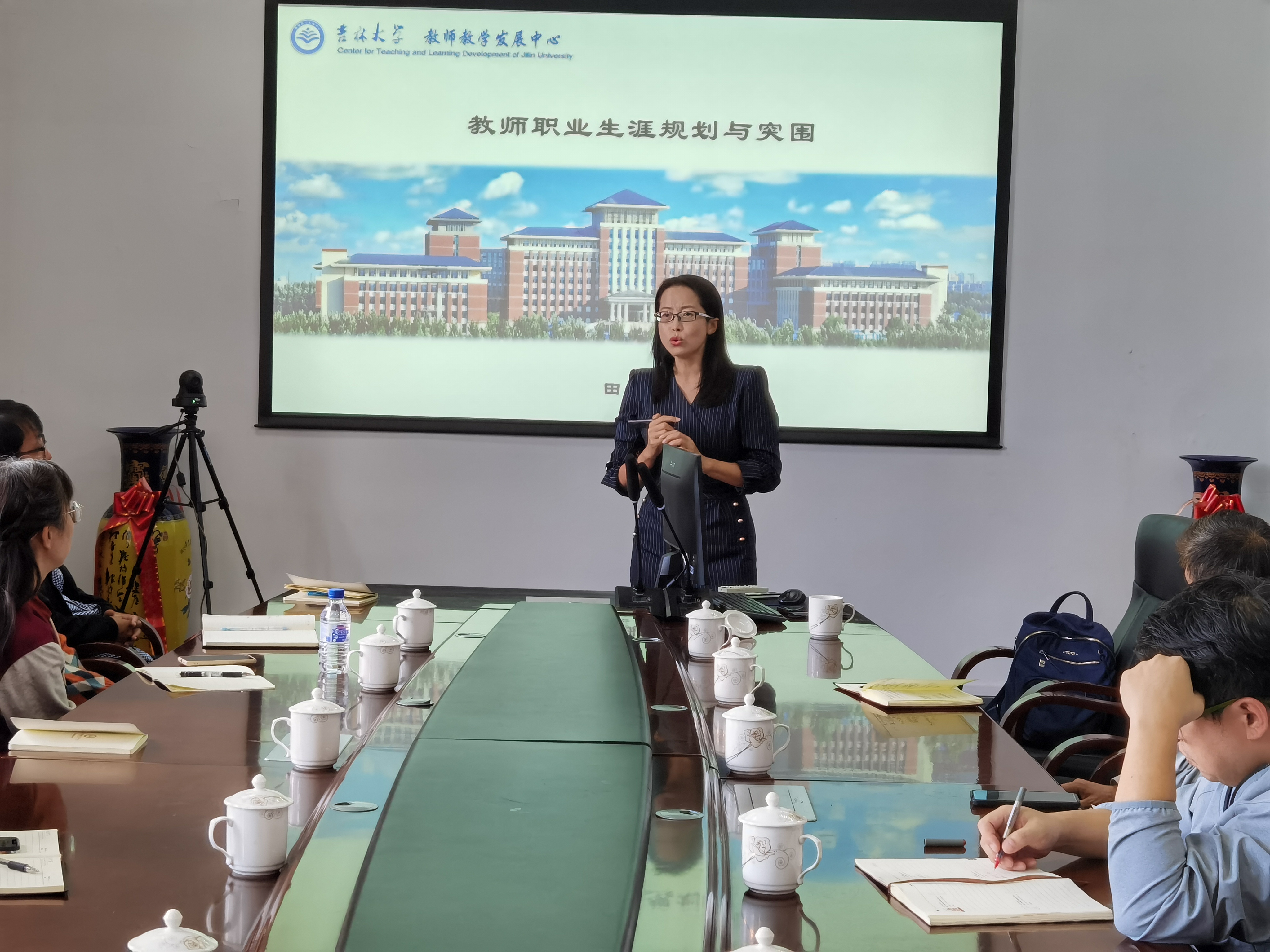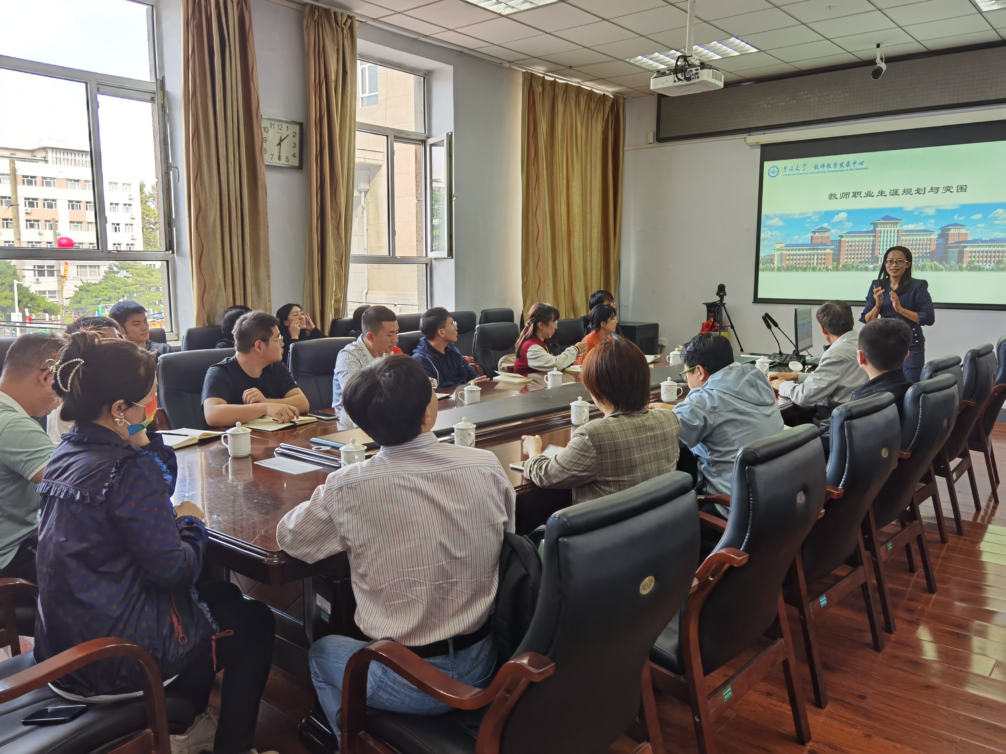 田教授从青年教师职业生涯规划及常见瓶颈,教学名师进阶的五个维度和4+N个层次,教发中心能提供的支持和资助等三个方面向大家介绍了HAHA体育教师教学发展中心的理念。对新入职教师的专业适应与过渡期、青年教师的专业形成与成长期、中年教师的专业突破与退守期、专业补给更新期及卓越教团队深教师的专业成熟期进行了深入解读。