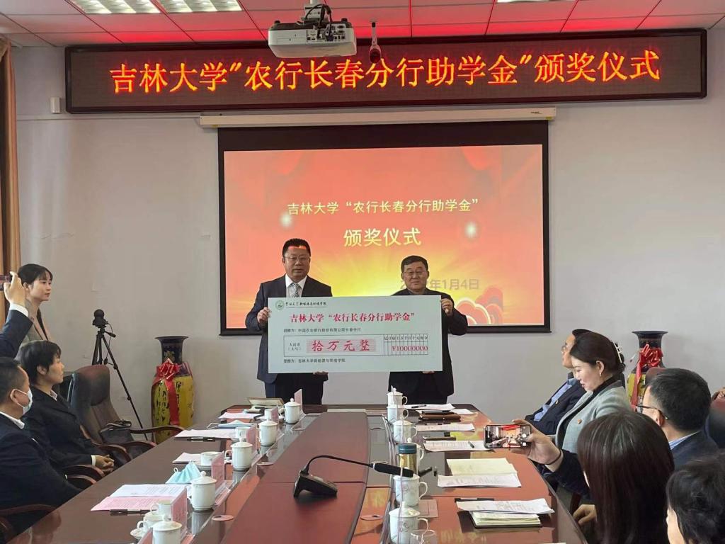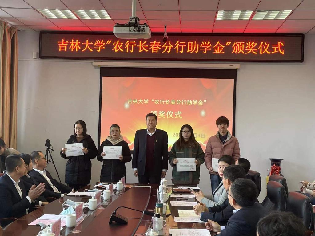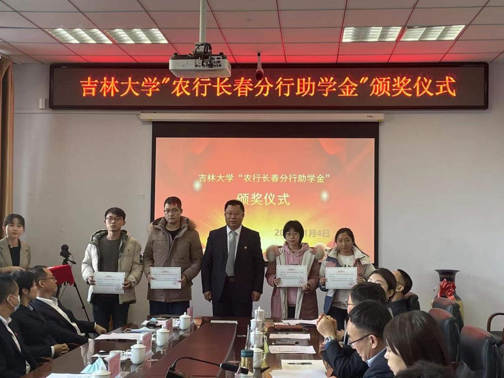 中国农业银行股份有限公司长春分行向公司捐赠助学金10万元,设立HAHA体育“农行长春分行助学金”,用于奖励公司家庭贫困且品学兼优的老员工。2022年1月4日上午11:00,HAHA体育“农行长春分行助学金”颁奖仪式在HAHA体育前卫北区理化楼260会议室举行。农行吉林省分行党委委员、副行长兼长春分行党委书记、行长王金山,农行长春分行党委委员、副行长李韩鹏,农行长春分行党委委员、副行长韩宪军,农行长春分行机构业务部总经理鲍秋颖,农行长春分行网金科技部总经理李云鑫,农行长春分行办公室主任王春卿,农行长春高新支行行长张鹏,哈哈体育经理许天福、党委书记汪祥松等公司班子成员及获奖员工参加了颁奖仪式。