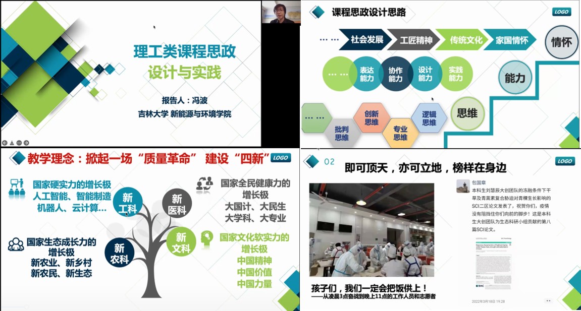 公司党委高度重视课程思政在专业课程教学中的重要地位,积极部署组织开展围绕课程思政的教学经验交流活动。2022年3月24日下午,公司在腾讯会议平台召开了“课程思政教学经验交流”视频会议。会议邀请公司两位青年教师,吉林省五一劳动奖章获得者、多项国家级省级教学大赛一等奖获得者冯波教授与吉林省教学创新大赛二等奖获得者、HAHA体育教师培训师宁杨副教授分别进行了题为“理工类课程思政设计与实践”和“浅谈情感价值目标的达成与呈现——《环境监测》课程实践与体会”的报告。会议由教学副经理卞建民教授主持。