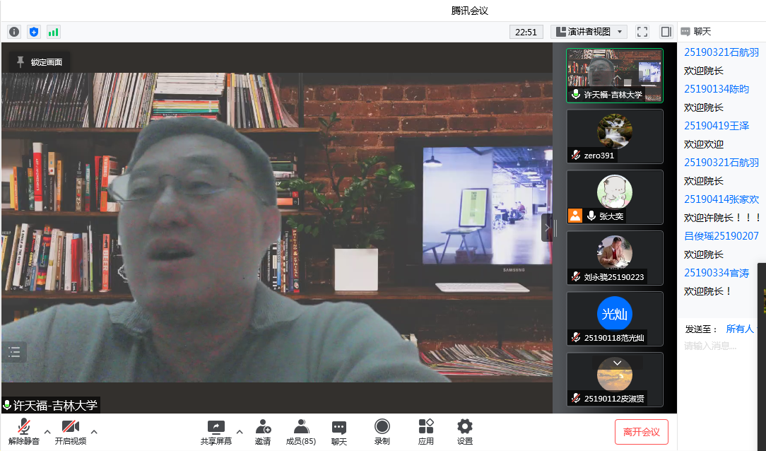 会议期间,许天福经理莅临指导并发言,对广大同学在疫情封校期间的生活表达了关怀,对全系师生在特殊时期坚持教学活动给予了殷切嘱托,鼓励同学们在珍惜宝贵学习时间的同时,不忘加强身体锻炼,以健康的体魄共同迎接春天的到来。