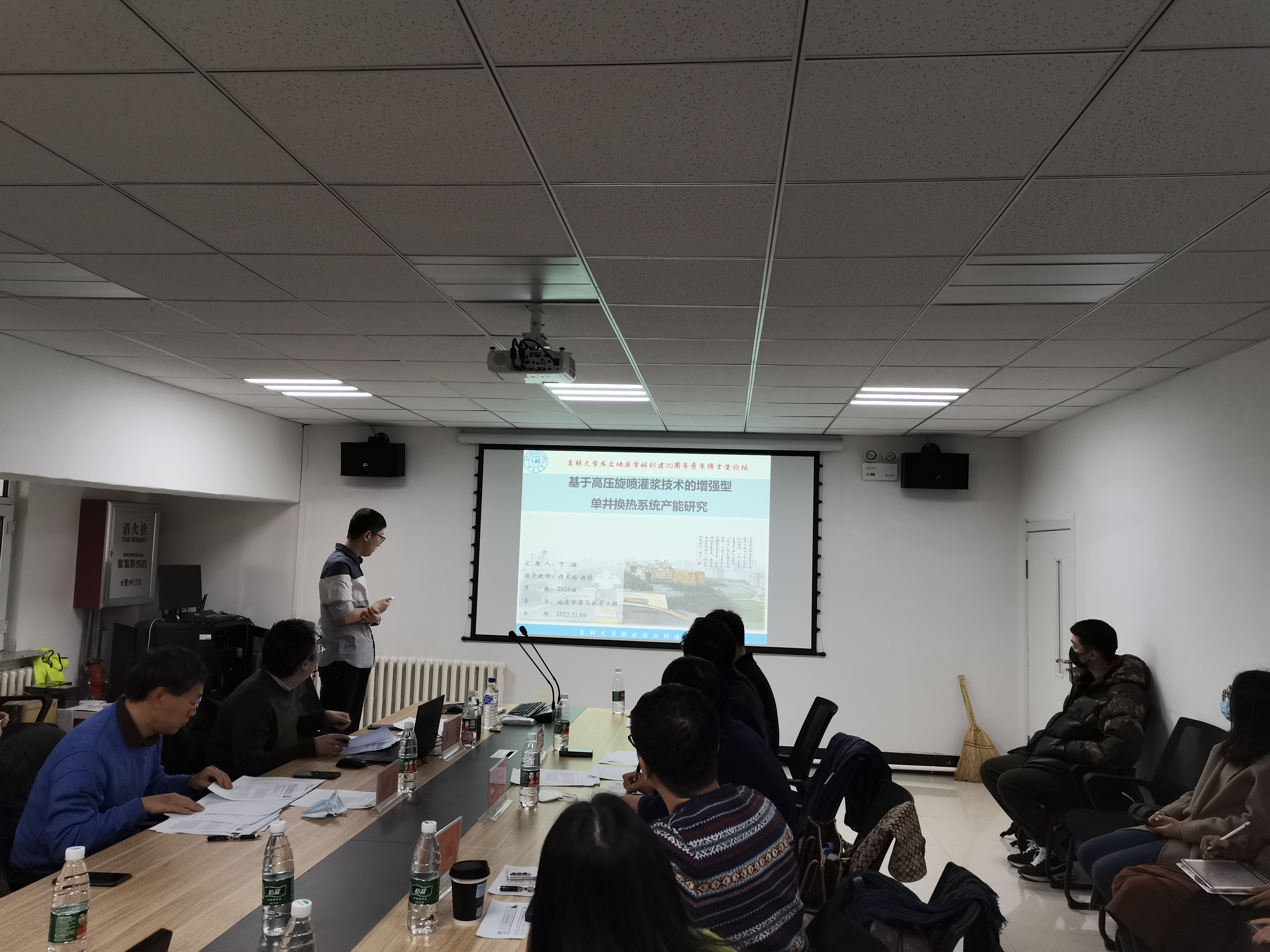 会议开始,张大奕教授对参与学术交流的各位博士研究生确认了打分规则由论文评分和宣讲评分两部分组成。参与学术交流的各位博士研究生宣讲流程为:首先就自己的科研成果进行论述宣讲,再由评委老师进行提问点评,最后指出存在的问题并评审打分。本次论坛中,师生交流探讨的研究领域涉及到电化学传感器、地热储层、单井换热系统、地下水污染源识别、纳米吸附、有机物污染物提取等多方面、多学科的内容,从实验室模型到现实环境进行了深入分析。同时评委老师针对员工研究内容中存在的问题提出了专业的指导意见及建议,并与同学们展开积极讨论。