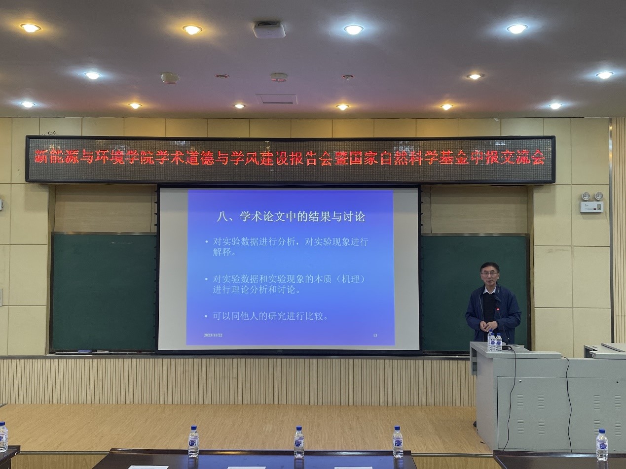 董德明教授作了题为《学术论文撰写与学术规范》的专题报告,一方面论述了撰写学术论文的全过程、意义及需注意的问题;另一方面着重强调了学术规范的相关问题,明确学术道德、学术规范、学术不端的概念,督促师生们在从事科学研究的过程中,应严格遵守国家有关法律、法规、社会公德及学术道德规范,要坚持科学真理、尊重科学规律、崇尚严谨求实的学风,勇于探索创新,恪守职业道德,维护科学诚信。科研院科技管理办公室副主任董双石教授作了题为《国家自然科学基金项目申请体会与经验交流》的报告,将学术诚信的思想贯彻始终,董双石教授从在基金委和公司科技管理办公室工作的经验出发从自然基金申报指导思想、撰写申请书的经验分享、到如何进行申请系统填报、申请中的注意事项、公司辅导奖励政策介绍等,系统而又全面的对基金申请中遇到的各类问题都进行了梳理和解释。苏小四教授结合自己获得国家自然基金重点项目、联合基金项目等经验,从基金资助格局、评审流程、申请书的撰写以及善后四方面分享了《国家自然科学基金项目申请个人心得体会交流》的报告。分享了基金申请从布局开始,到选题到写作应当注意的细节并给出了自己的建议。
