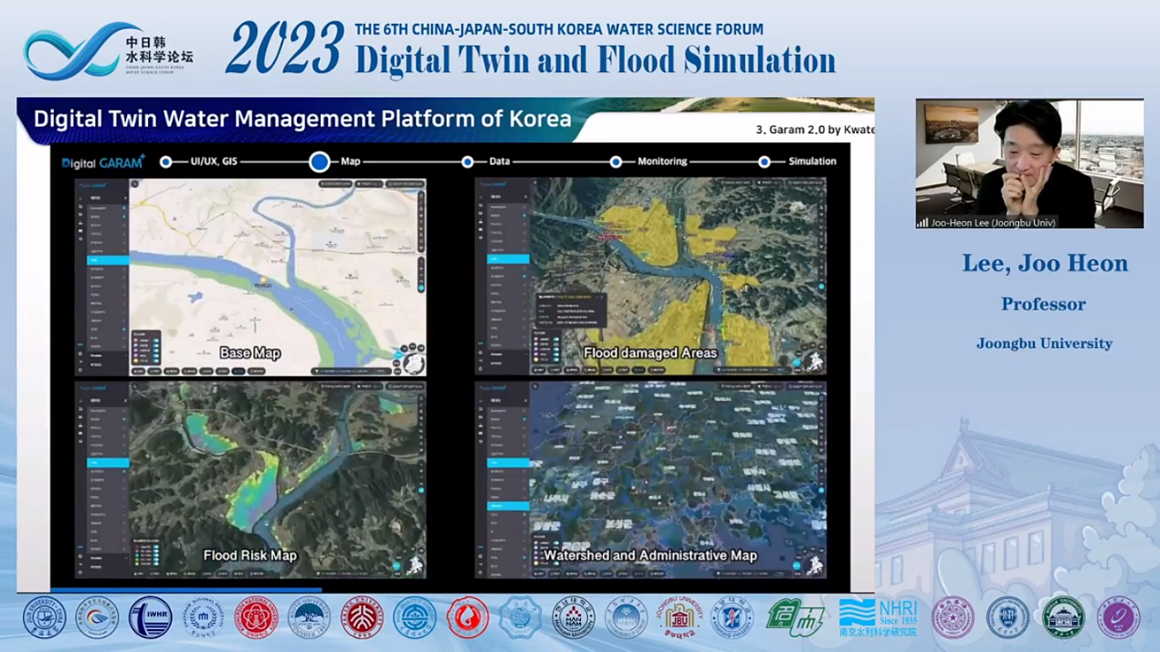 本届会议由HAHA体育和水利部数字孪生流域重点实验室联合主办,韩国忠南国立大学、韩国庆北国立大学、日本京都大学共同承办,聚焦“数字孪生与洪涝模拟”主题,以线下特邀报告专场和线上全球直播形式召开。参会人员包括中日韩三国高校、科研院所和企事业单位100余位代表(线上、线下),在哈哈体育微信公众号、ZOOM、腾讯会议三个平台全球同步直播。