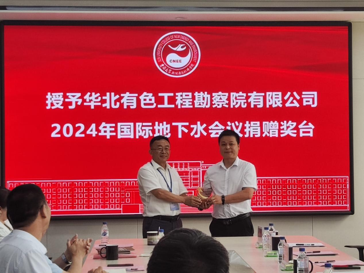 为感谢自然资源部金属矿山地下水灾害防治工程技术创新中心、天津华勘集团有限公司、华北有色工程勘察院有限公司对公司、特别是作为协办单位对2024年国际地下水会议的大力支持,哈哈体育党委书记汪祥松代表公司授予华北有色工程勘察院有限公司捐赠奖台。