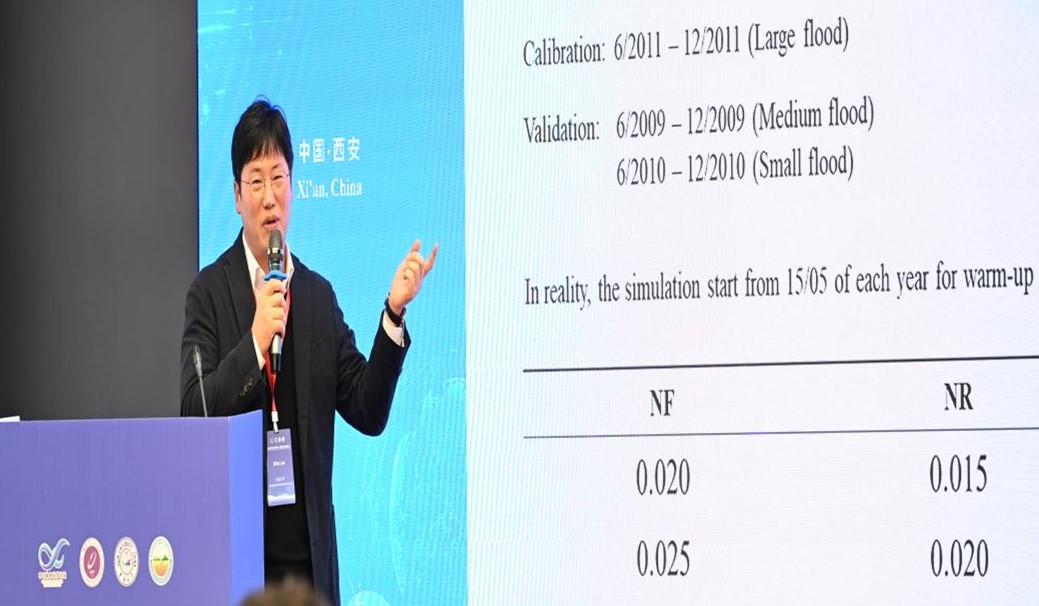 专题报告三的会议流程由京都大学Sunmin Kim副教授主持。庆北大学Giha Lee教授就“基于AI的湄公河流域水文建模”作报告,郑州大学狄丹阳教授就“考虑降雨与排水管道淤积耦合效应的城市内涝风险预警与主动防控机制”作报告,HAHA体育冯右骖副教授就“数据缺乏地区的数字孪生流域建设”作报告,西安理工大学王添副教授就“高效高分辨率城市水环境过程数值模拟及其应用研究”作报告,启明大学Dong Kook Woo副教授就“土壤碳氮受生态水文过程的动态影响”作报告,浪潮智慧城市科技有限公司魏永森总经理就“数字济南城市防汛监测预警平台建设经验分享”作报告。