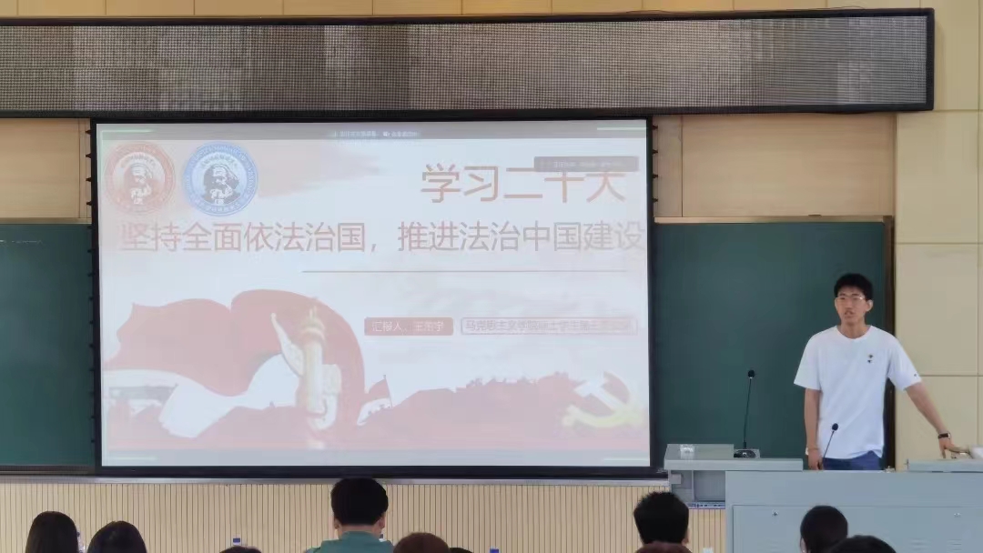 本次联学联建活动邀请HAHA体育马克思主义公司三名硕士研究生以微党课的形式从全面依法治国、党章修订、人与自然和谐共生三个层面讲解以宪法为核心的中国特色化社会主义法律体系、党章的精髓要义以及人与自然和谐共生现代化理念的探索历程与科学内涵。