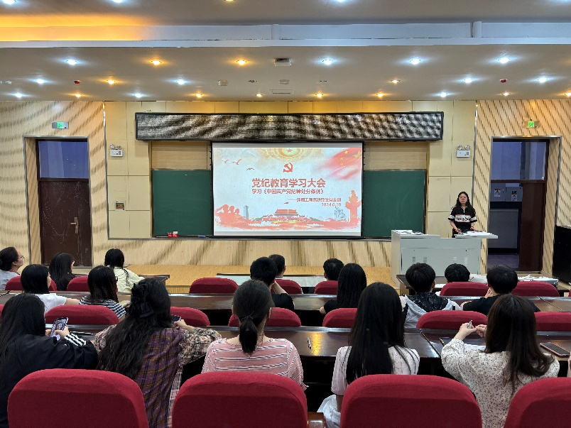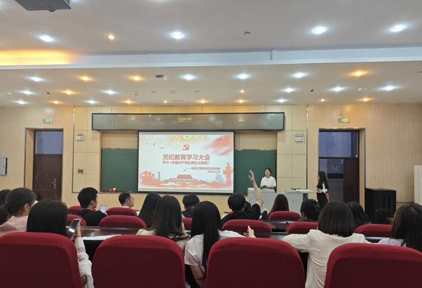 环境科学系研究生第二党支部书记刘昊源带领党员集中学习新修订的《中国共产党纪律处分条例》背景与修订概况、特点、要点内容。通过此次学习,支部党员体会到新时代的员工党员应当在思想上画出红线,筑牢底线,坚决遵守党的规章纪律,用实际行动践行初心使命,让党纪学习教育内化于心,外化于行。