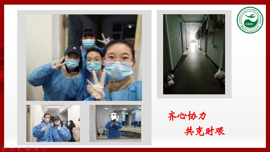 活动伊始,党支部组织委员兼宣传委员牛梦圆同学带领大家一起学习了《致全省各级党组织和广大共产党员的一封信》以及《致全校各级党组织和广大党员的倡议书》。随后,四位党员志愿者代表分别分享了自己的战疫故事。孟益坎同学向大家展示了几组图片,讲述了自己从看到老师同学们积极参与疫情防控到自己和室友们一起参与防控的故事,分享了自己在清晨为大家发放完早餐后获得的自豪和光荣。她用“聚是一团火,散是满天星”形容一直奋战在校园疫情防控第一线的志愿者。一直驻校工作的钟宇博老师也分享了他这段时间的工作感受,他最后说“我们终会在春暖花开的校园里,迎接HAHA体育春天的到来”。支部其他党员也分别谈了自己在疫情期间在寝室与疫情抗争的感受。大家纷纷表示,尽管突发的疫情打乱了正常的生活安排,但在公司师长们的关怀呵护下,每一位同学都能够及时调整好心态,没有一丝一毫的慌乱,以从容、健康、乐观的心情充实地度过寝室抗疫的日子。